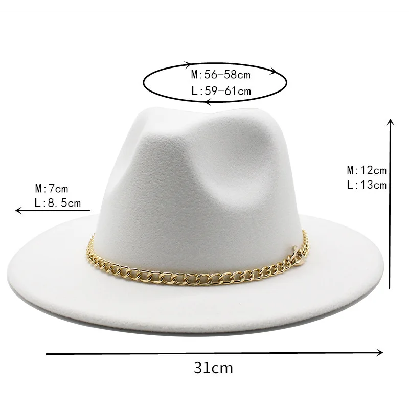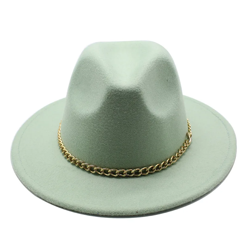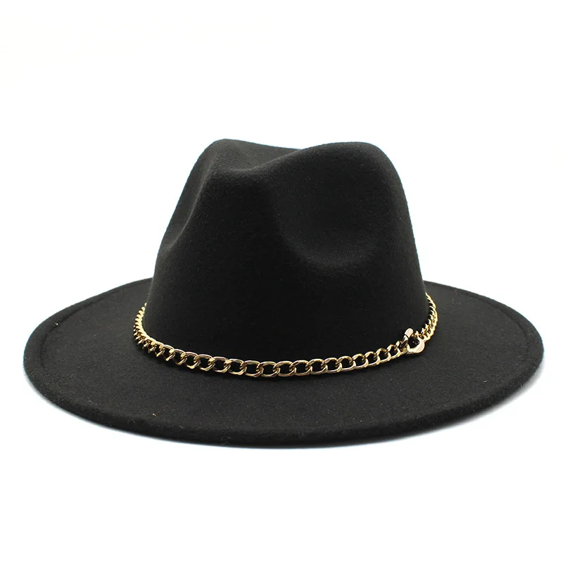 Головной убор унисекс, широкий, фетровые шляпки с полями, с цепочкой