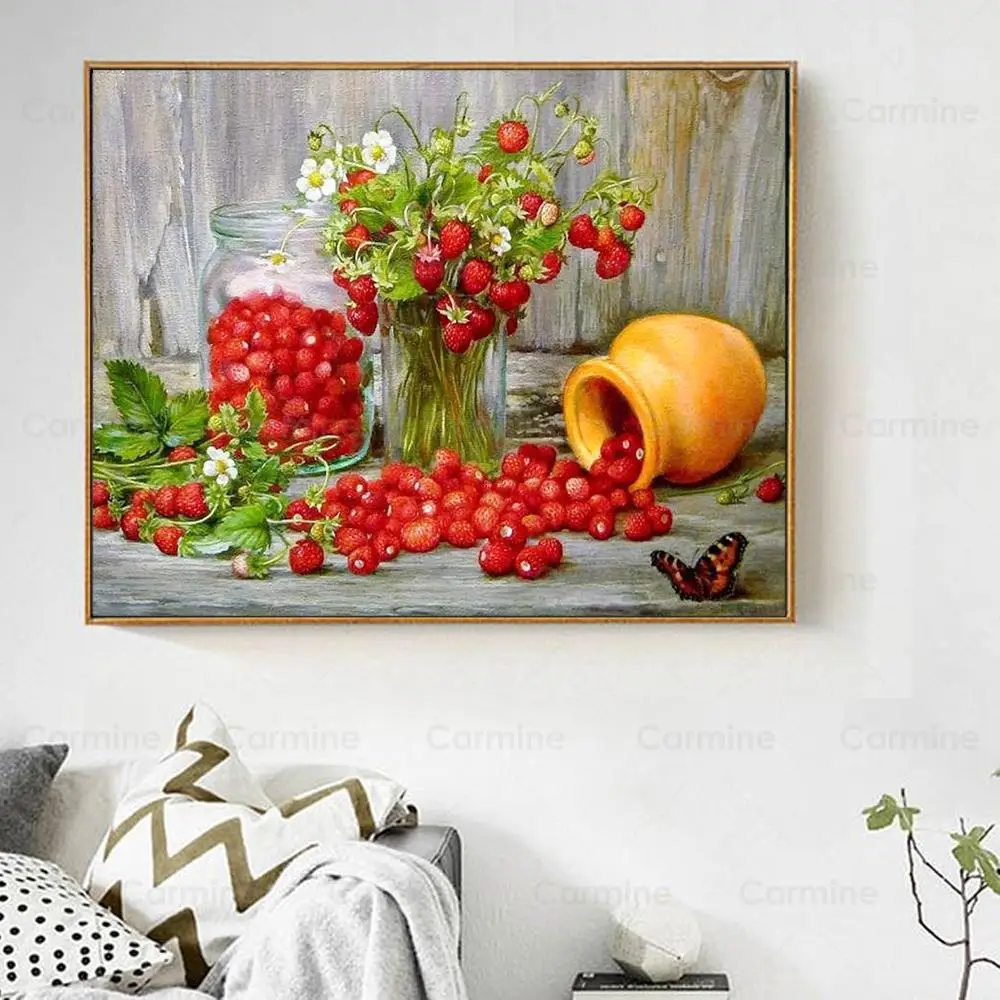 Алмазная 5D картина сделай сам с ромашками, клубничкой, круглые, с красными фруктами, для кухни, украшения на стену