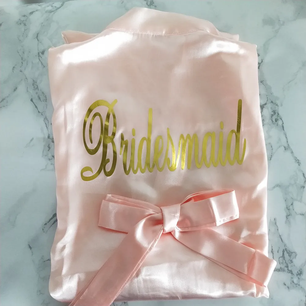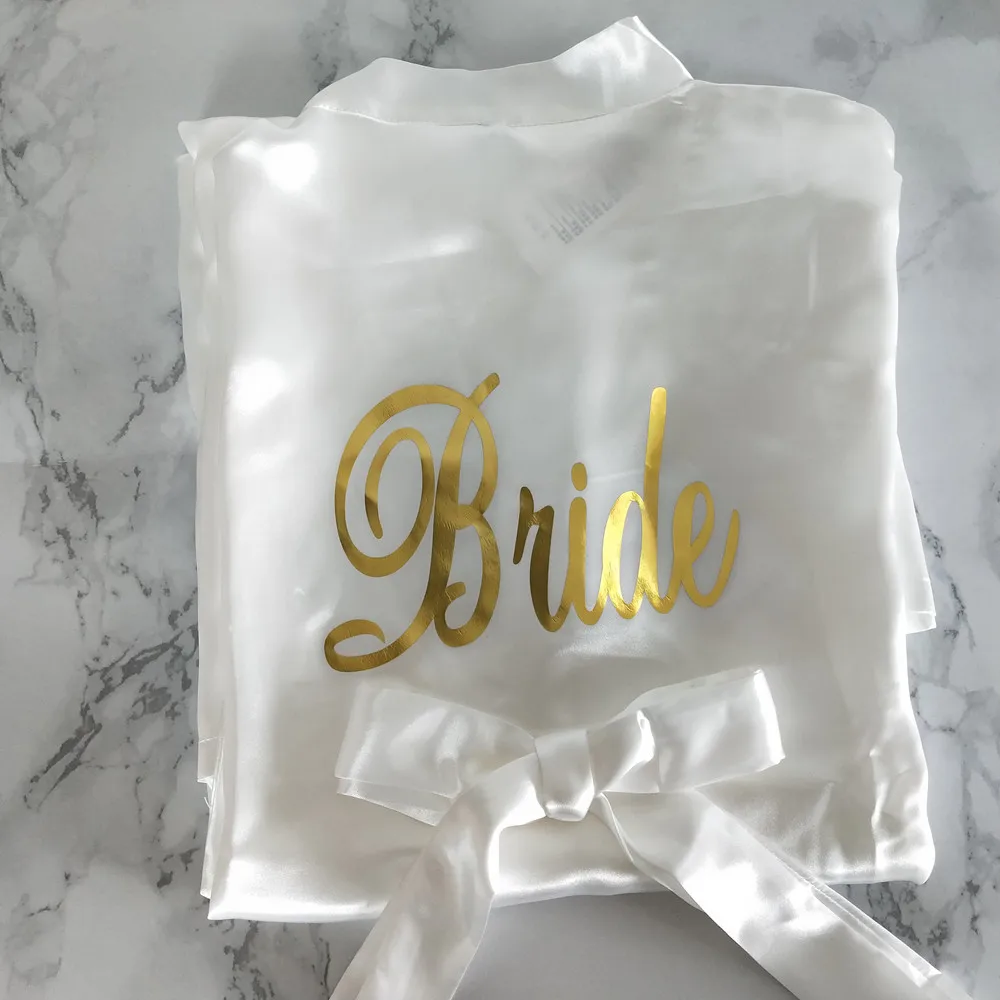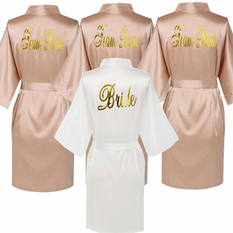 С золотым принтом для невесты или подружки невесты Команда Невесты; Свадебное платье для детей свадебный душ вечерние подарки Атласный халат Пользовательские невесты халаты