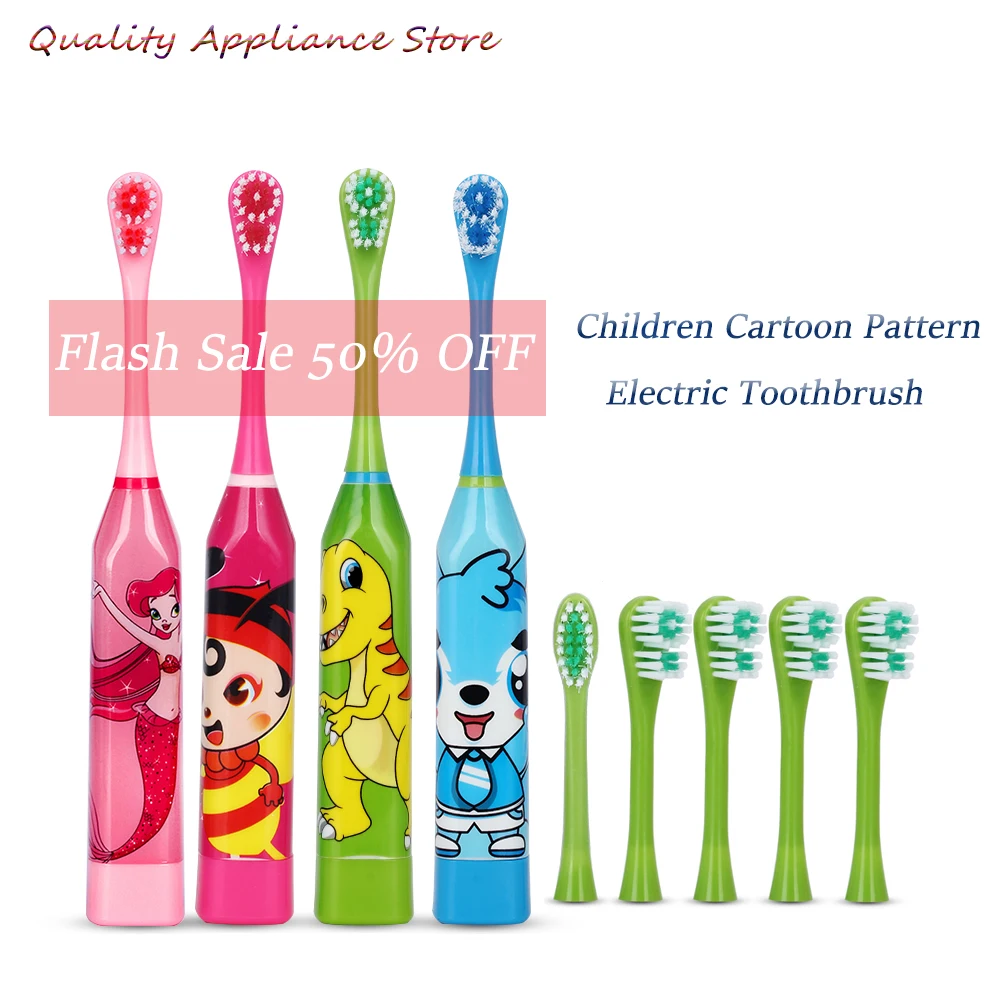 Прекрасный детей электрические зубные щётки мультфильм шаблон двухсторонняя зубная щетка электрическая зубная щетка для детей с 2 шт. головка вспышки