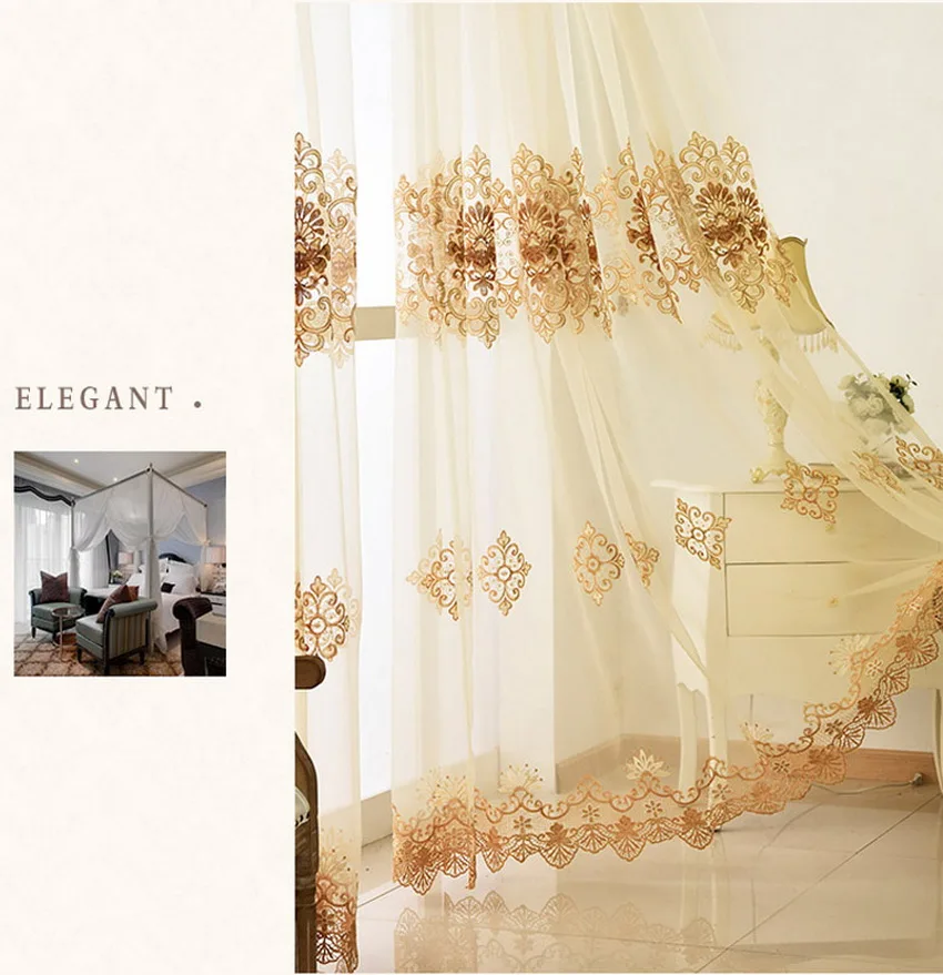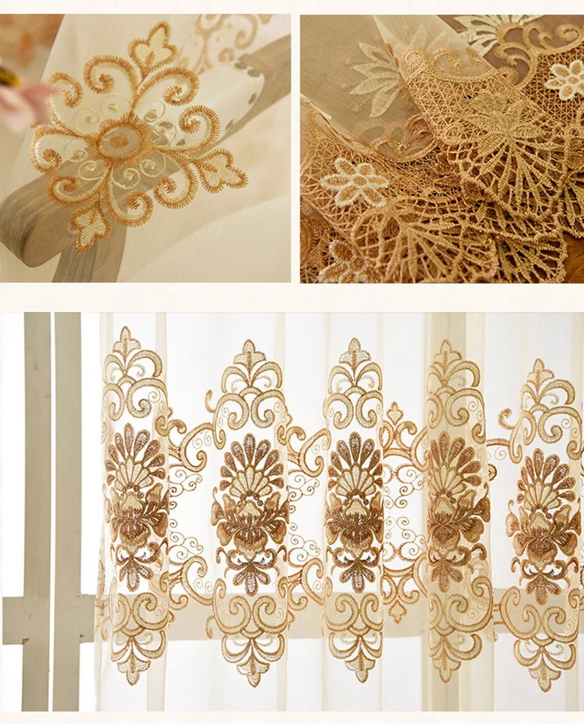 Роскошные прозрачные Занавески GXI в европейском стиле с водорастворимой бежевой вышивкой и цветами, вуаль, занавески для гостиной, спальни, кружевные тюлевые шторы