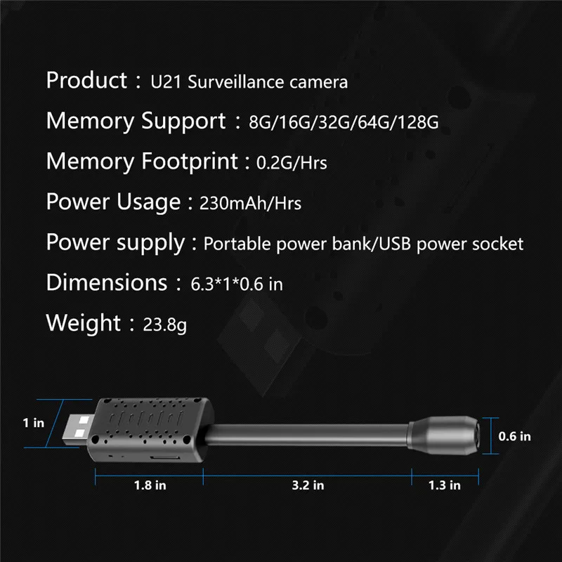 Умная мини-камера видеонаблюдения U21 HD с поддержкой Wi-Fi и USB