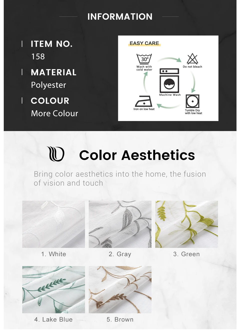 Шторы LISM с вышивкой листьев, прозрачные тюлевые занавески из вуал...