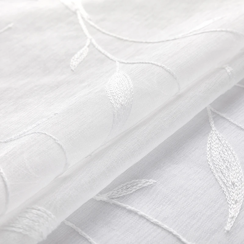 Занавеска CDIY из тюля, белая, для гостиной, с вышитыми листьями