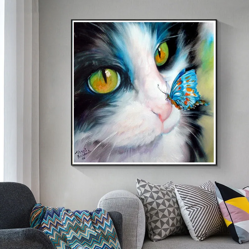 Алмазная 5D картина сделай сам, вышивка крестиком с черным котом, м...