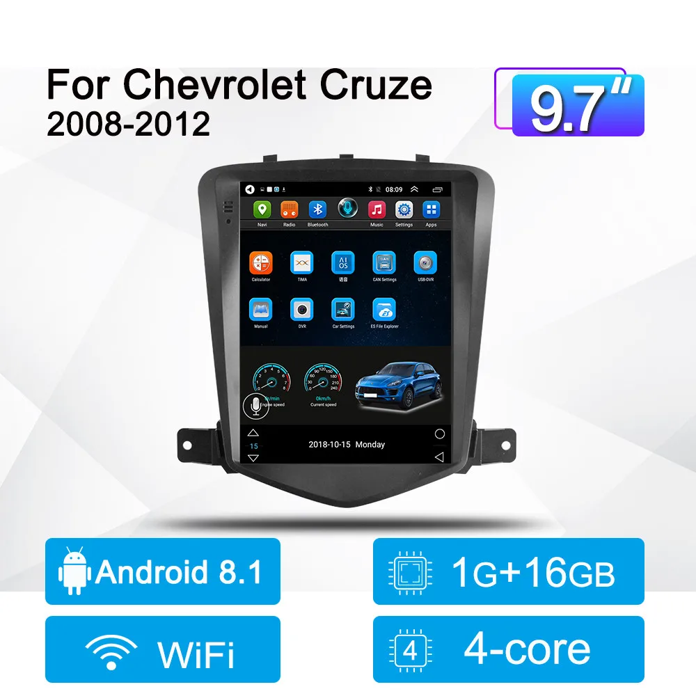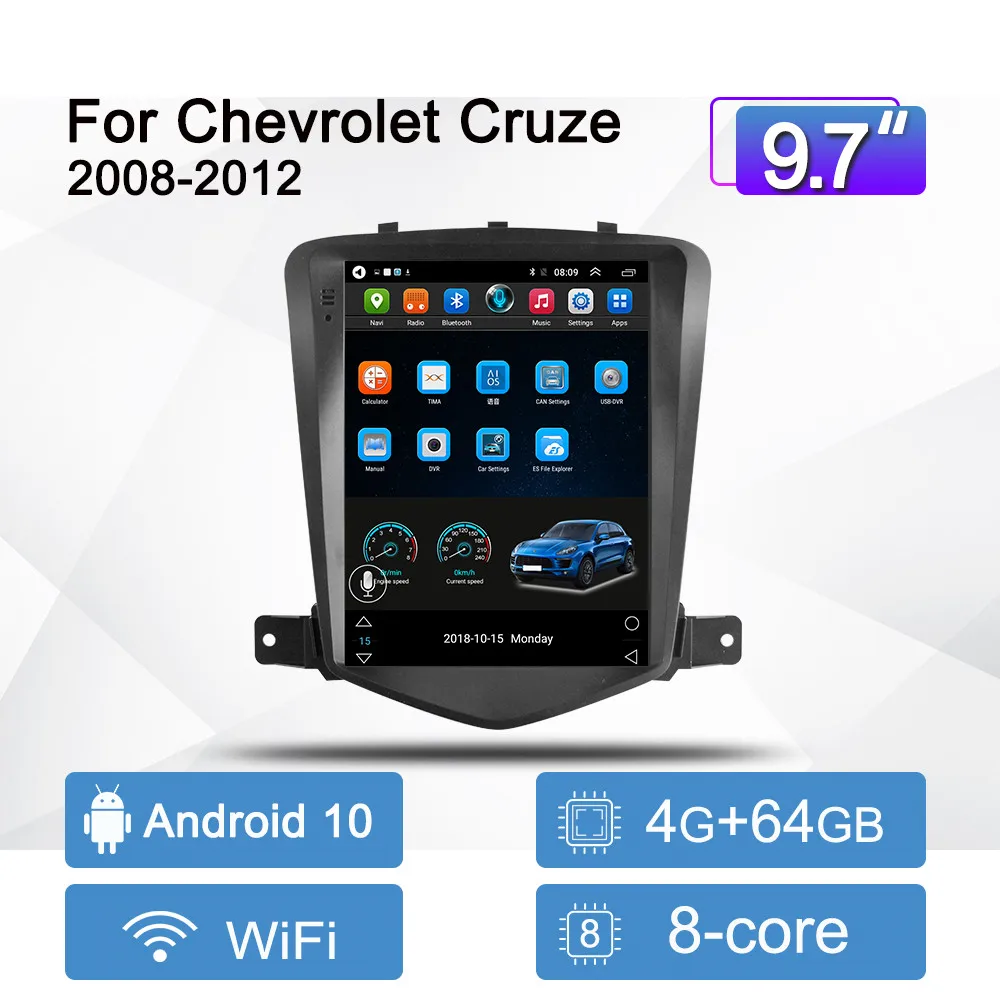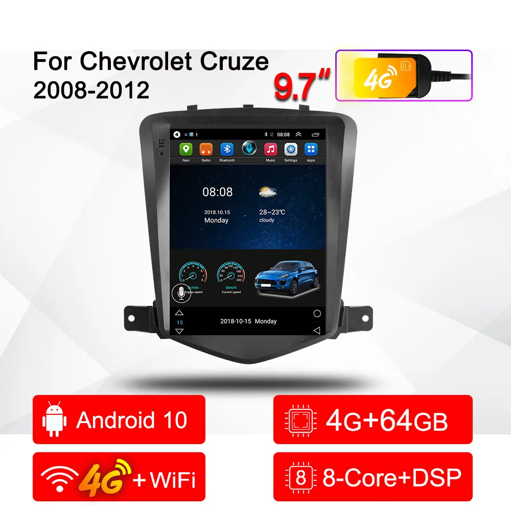 Автомобильное радио, мультимедийный видеоплеер для Chevrolet Cruze J300 2008-2012, экран в стиле Tesla, навигация GPS, 2 din, 4G, Android 9