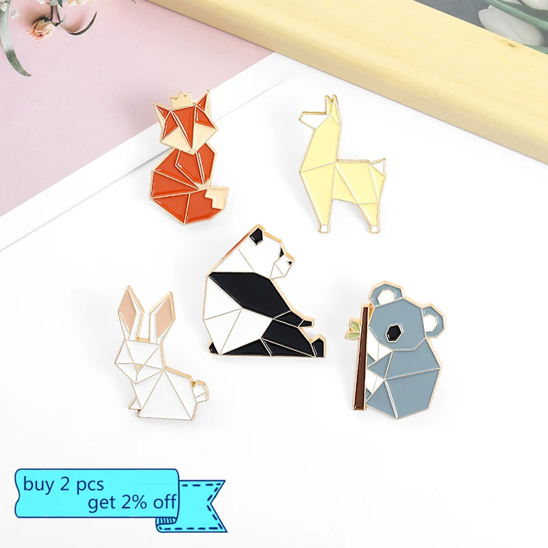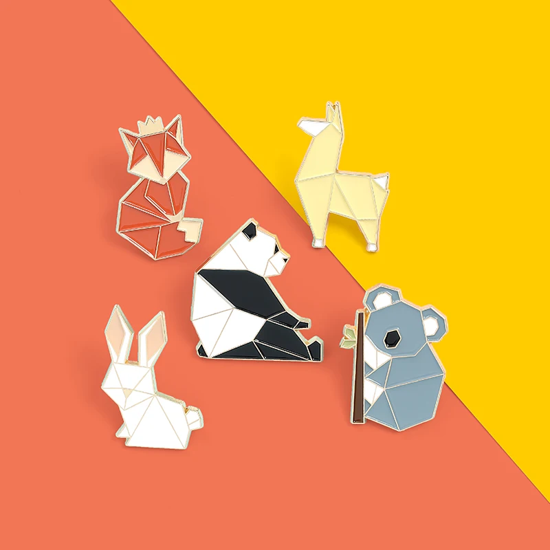 Оригами, лиса, панда, кролик, коала, альпака, эмалированная булавка...