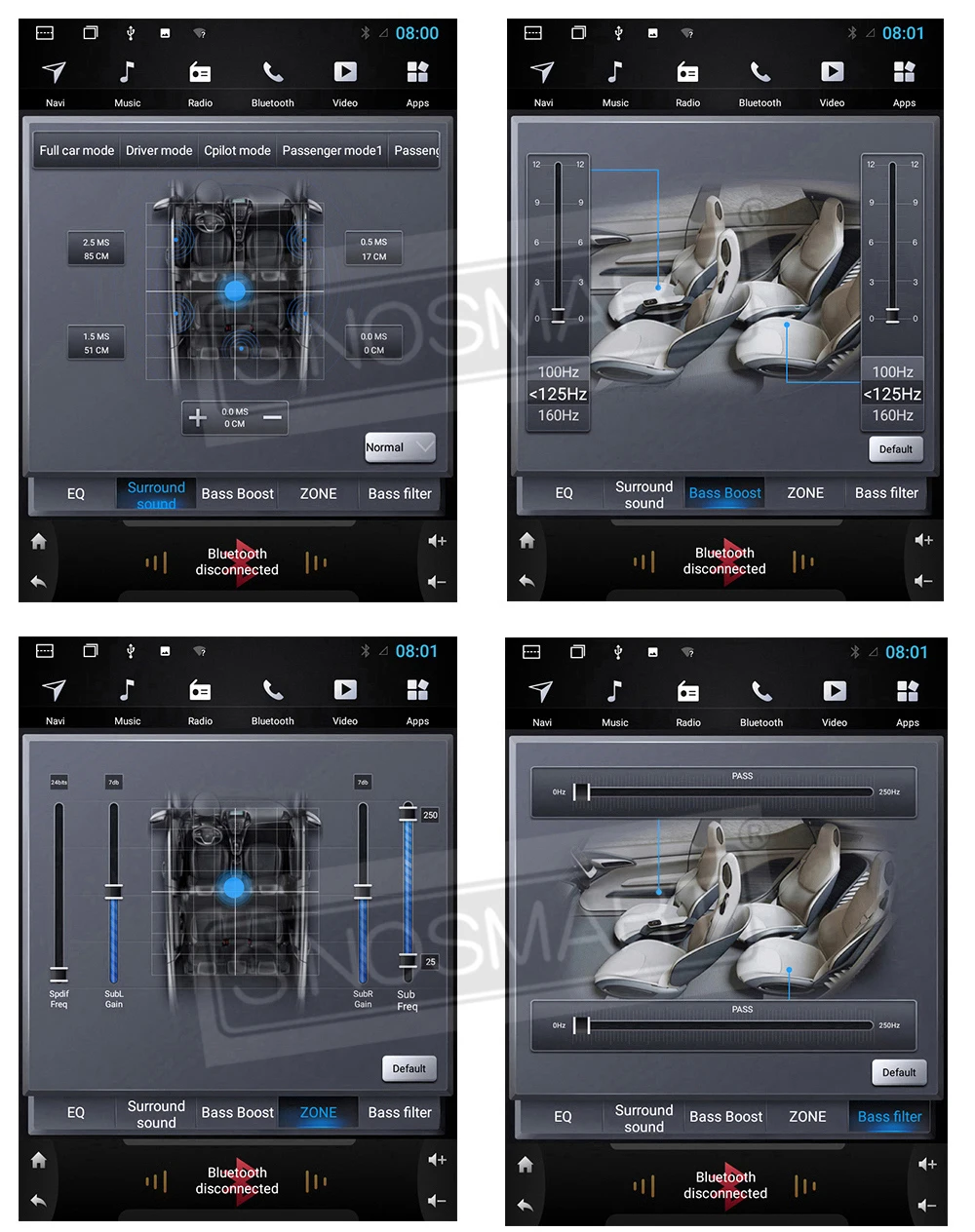 Встроенный Аудиопроцессор DSP для Hi-Fi звука, независимая Регулировка передних и задних динамиков, настройка 48EQ дает вам фантастическую музыку! Какова функция встроенного DSP аудиопроцессора? Это цифровой сигнальный процессор, который позволяет вам самостоятельно управлять множеством различных сторон каждого динамика в вашей пользовательской автомобильной аудиосистеме. Вы можете выполнять различные задачи настройки с помощью DSP, такие как управление выравниванием времени для создания отличного центрального изображения, вы можете настроить Кроссоверы для отправки только определенных частот в твитеры, динамики среднего диапазона, средние басовые динамики и сабвуферы, и вы можете управлять эквалайзером, чтобы настроить каждый динамик на целевой уровень отклика.
