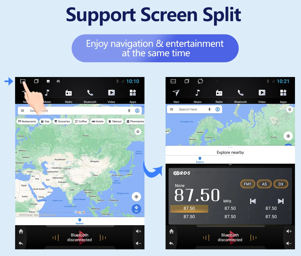 1. Принимайте/совершайте телефонный звонок с sim-карты 2. Переключение на фронтальную камеру автоматически 3. Поддержка беспроводной Android auto