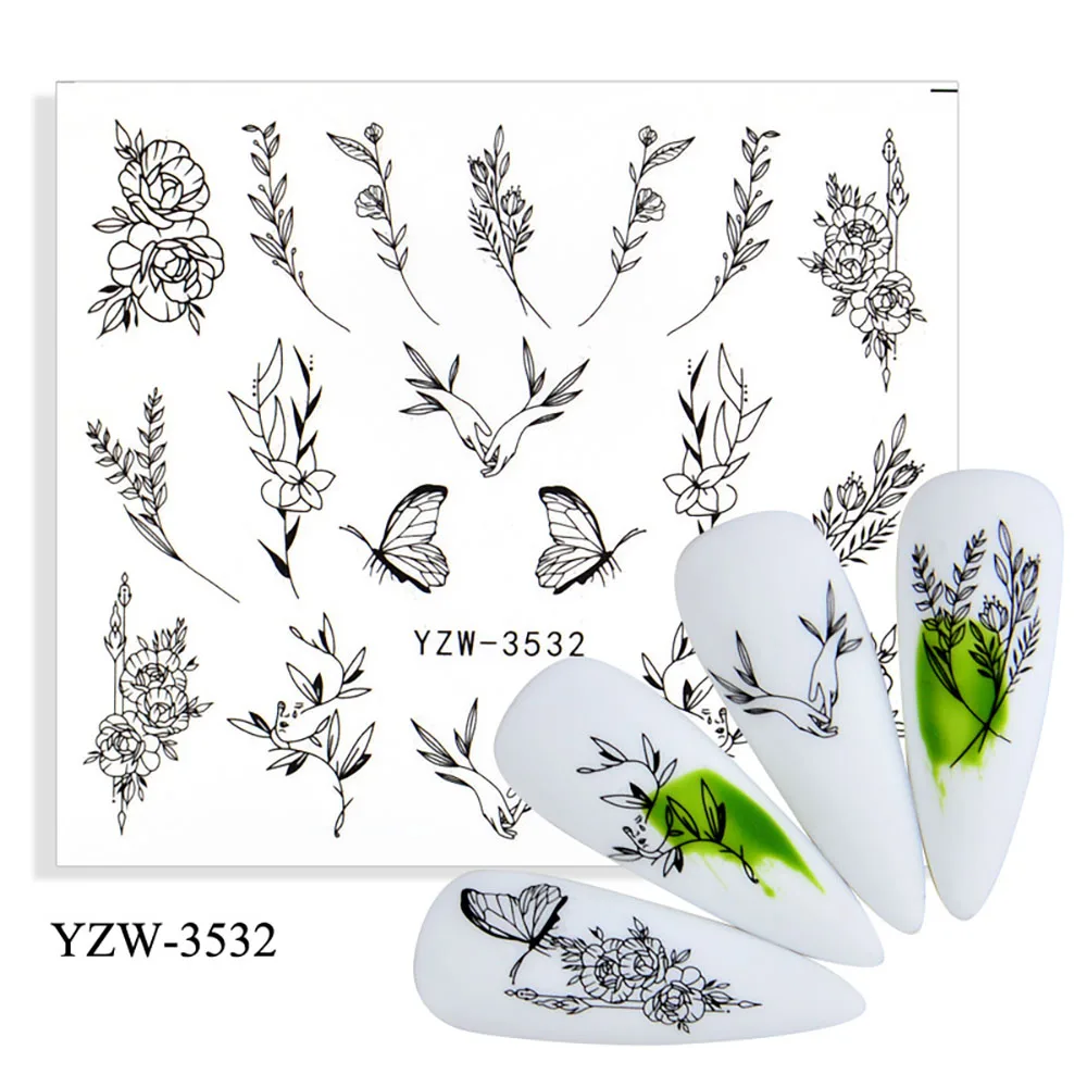 3D Водные Наклейки для ногтей с цветами и листьями, Водные Наклейки для ногтей, наклейки для ногтевого дизайна, переводные наклейки сделай сам, Водные Наклейки для ногтевого дизайна