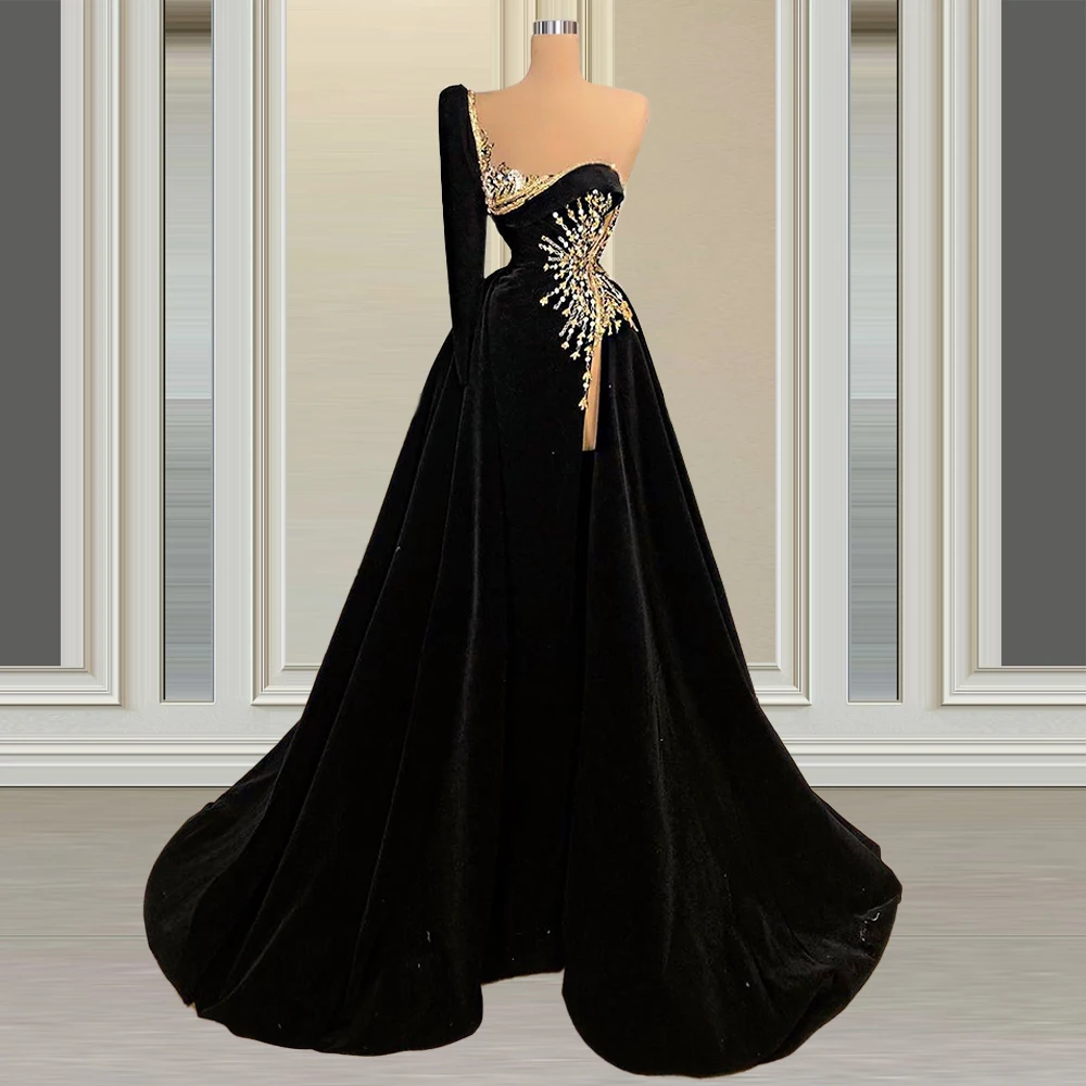 Женское вечернее бархатное платье на одно плечо, фиолетовое длинное...