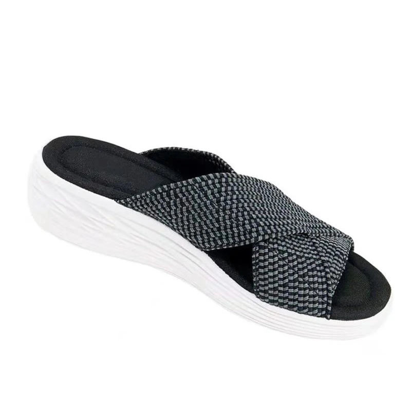Женские шлепанцы, эластичные сандалии на танкетке, на перекрестной ...