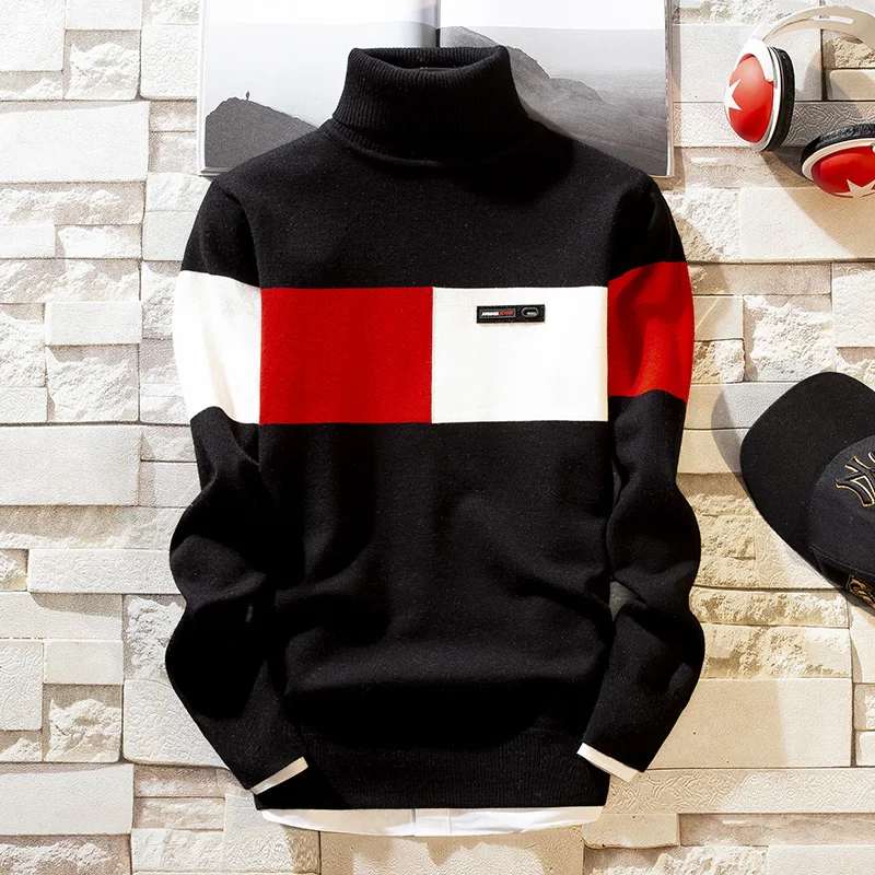 Новинка осени 2020, мужской свитер с высоким воротником, Мужской пуловер, Мужская однотонная Облегающая водолазка, свитер, топы, вязаные пуловеры