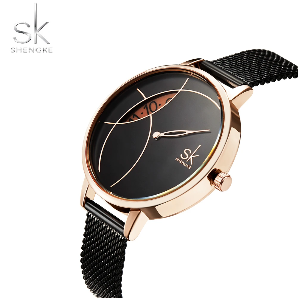 Shengke креативные часы для женщин, часы из нержавеющей стали, супе...