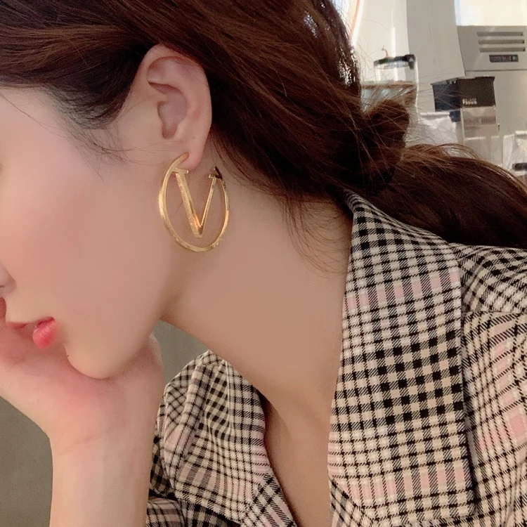 Новинка 2021, модные Универсальные латунные круглые серьги-кольца золотого цвета с буквами V, кольца, Высококачественная Женская бижутерия, аксессуары