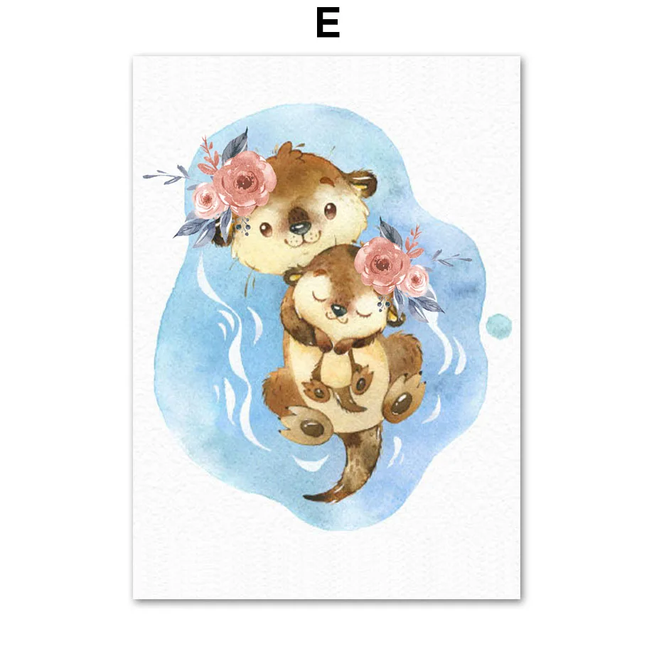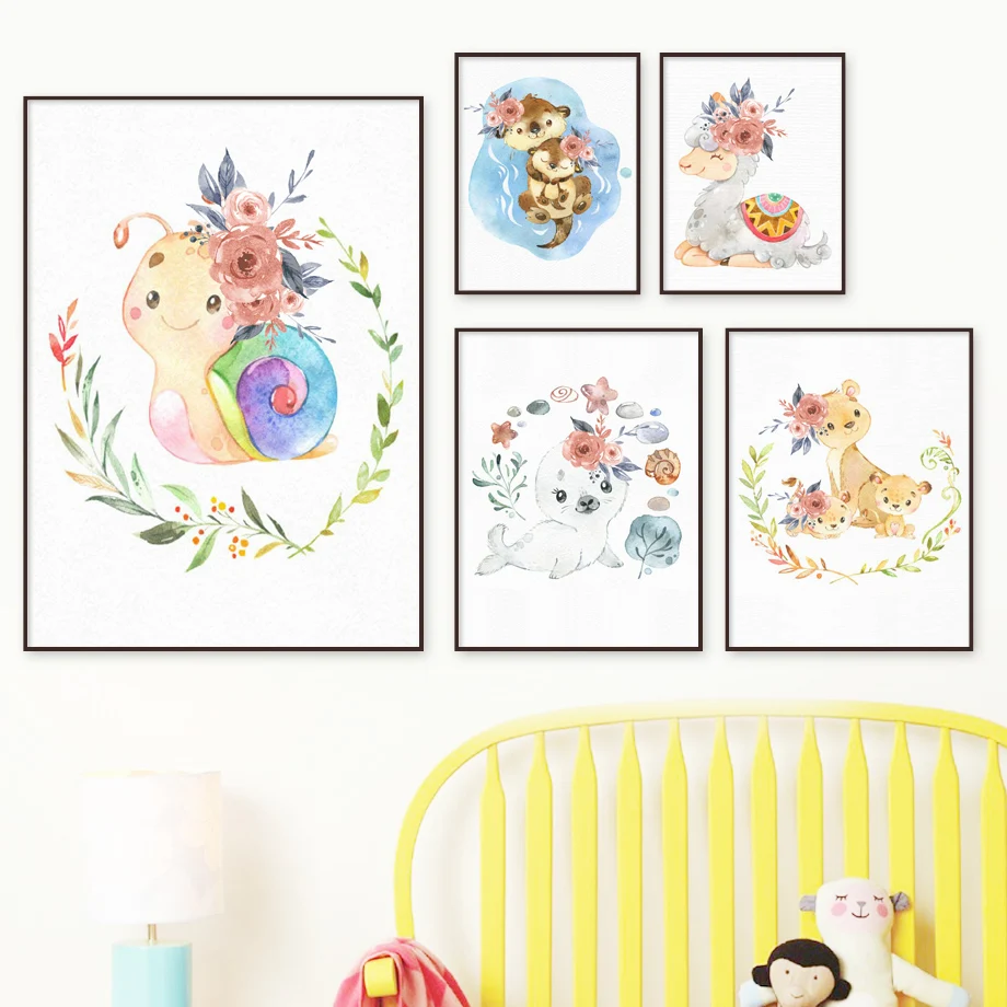 Картина на холсте с изображением выдры улитки медведя овцы птицы Мультяшные животные скандинавские постеры и принты настенные картины для декора детской комнаты