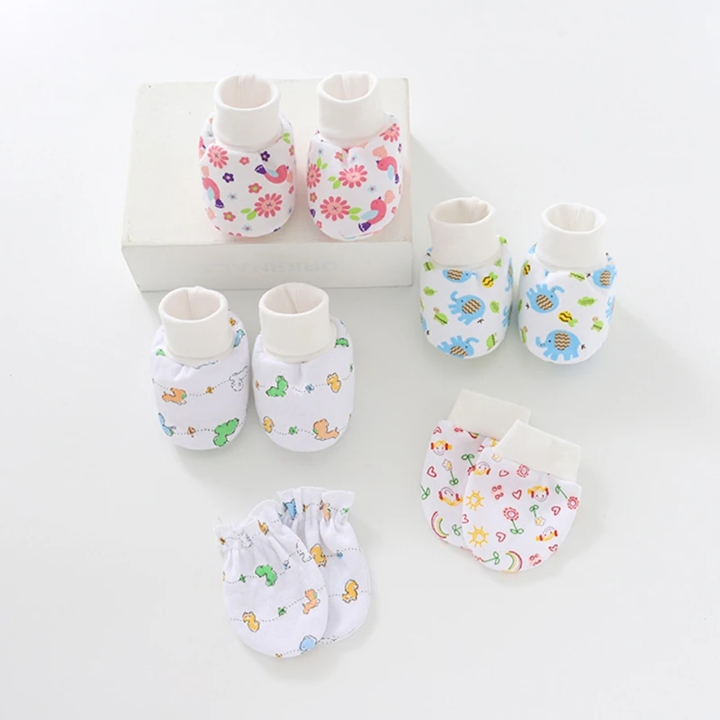 Детские перчатки с героями мультфильмов, шапка, чехол для ног, Хлопковые варежки, шапочка, Комплект носков для новорожденных