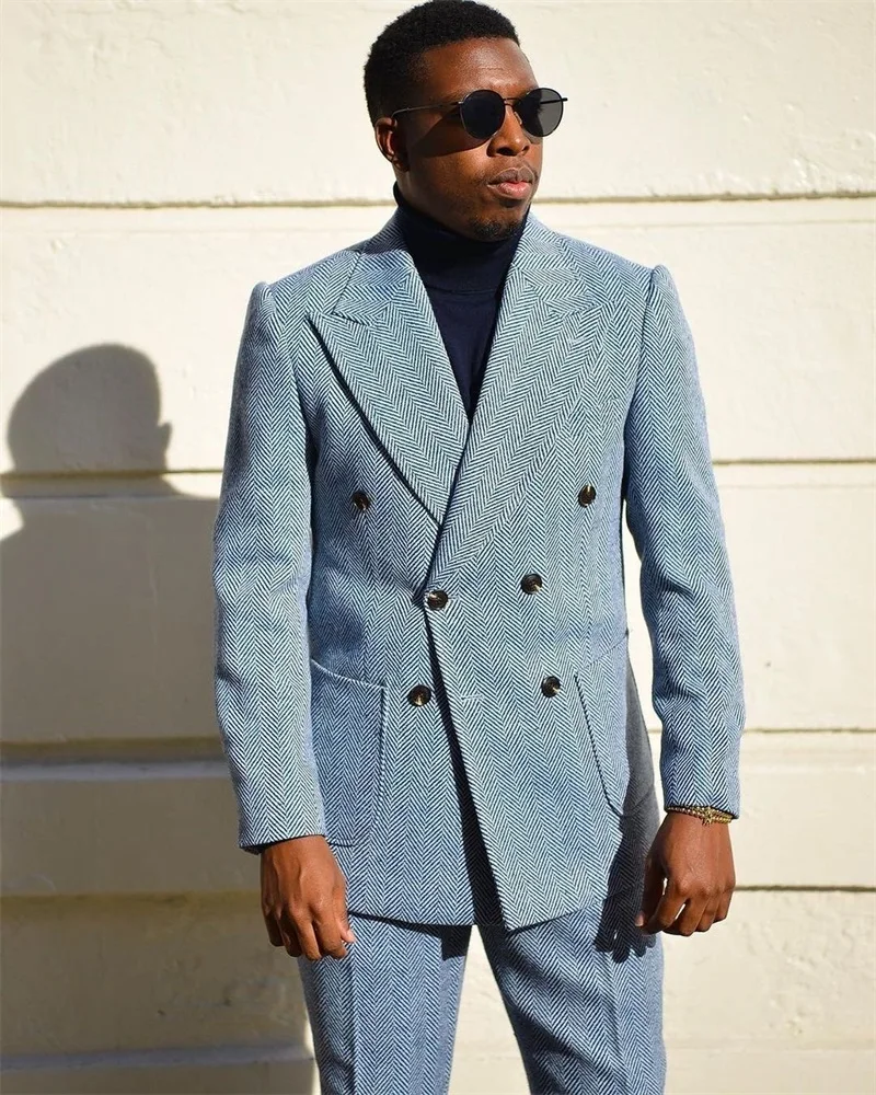 Мужские костюмы из 2 предметов, шерстяной двубортный брючный костюм...