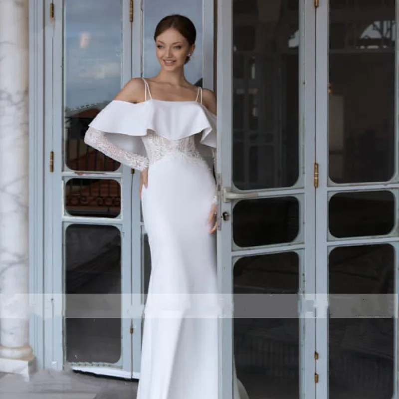Сексуальные свадебные платья с открытыми плечами, 2 в 1, кружевные рукава, аппликации, атласная Русалка, на тонких бретельках, свадебные платья, Vestido De Novia, Новинка