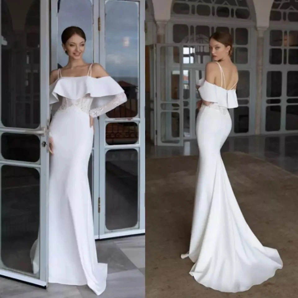 Женское атласное свадебное платье с юбкой годе, Пляжное платье с дл...