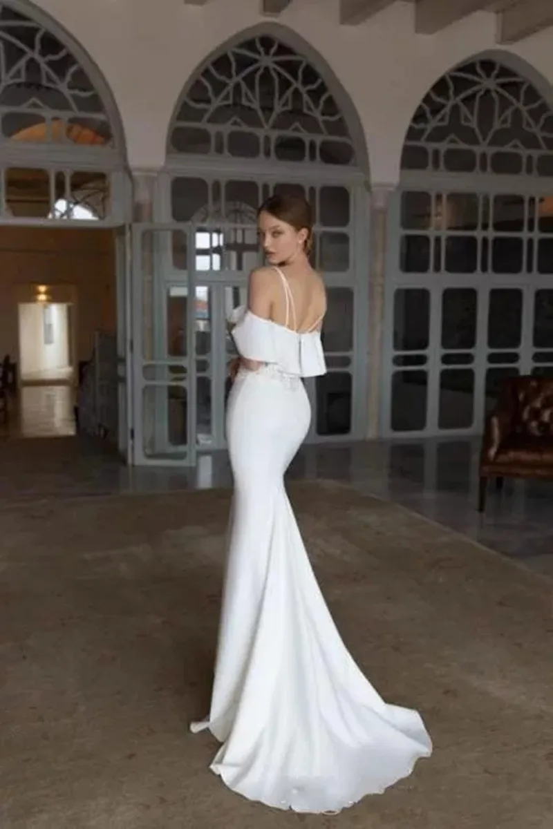 Женское свадебное платье с юбкой-годе, открытыми плечами и шлейфом