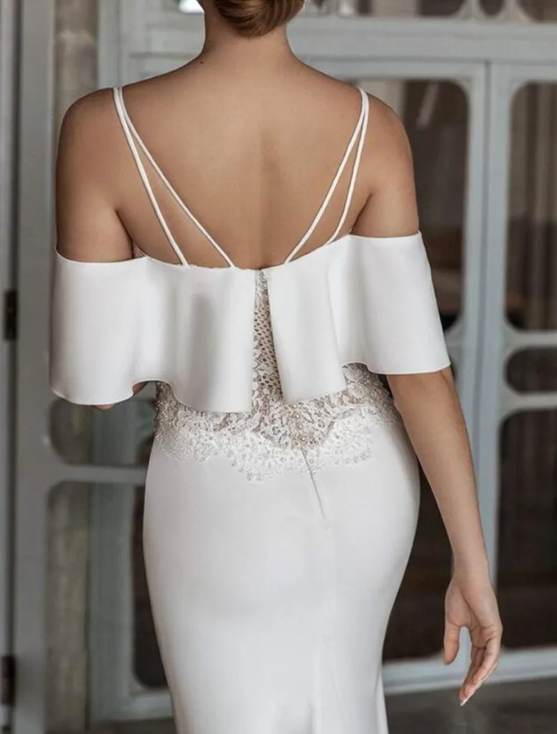Свадебное платье с юбкой годе, на тонких бретелях, с открытой спино...