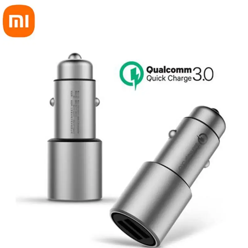 Автомобильное зарядное устройство Xiao Mijia QC 3,0 с двумя USB-портами и поддержкой быстрой зарядки, макс. 5 В3 А, мини металлическое автомобильное зарядное устройство, адаптер для Xiao mi iPhone Samsung Huawei