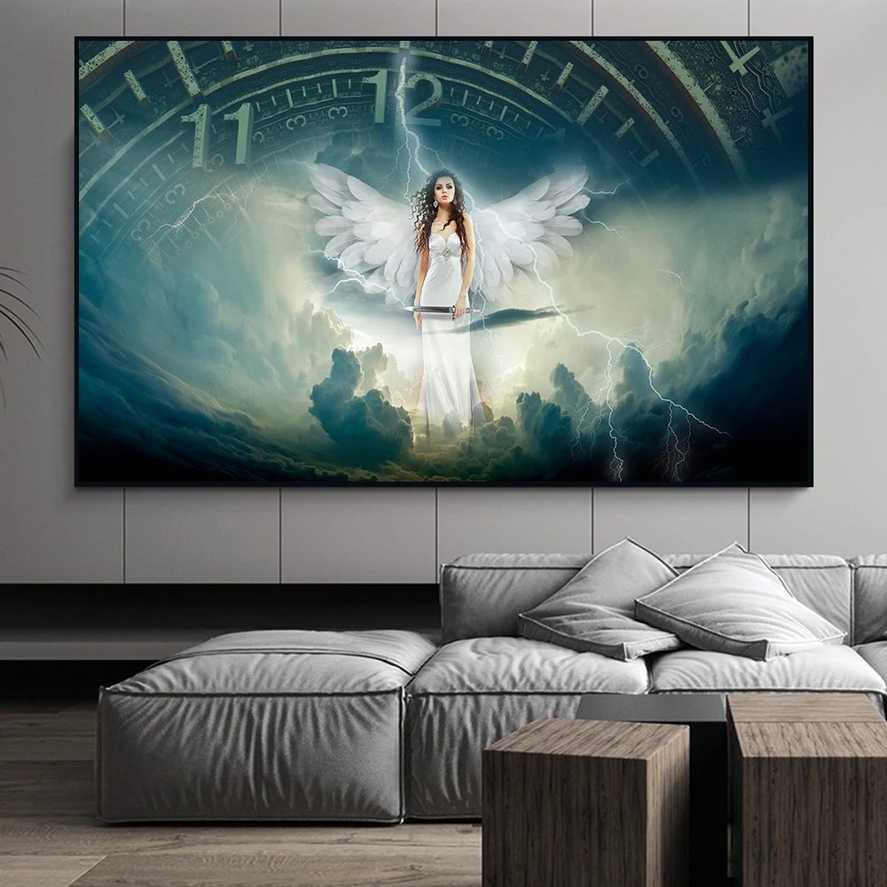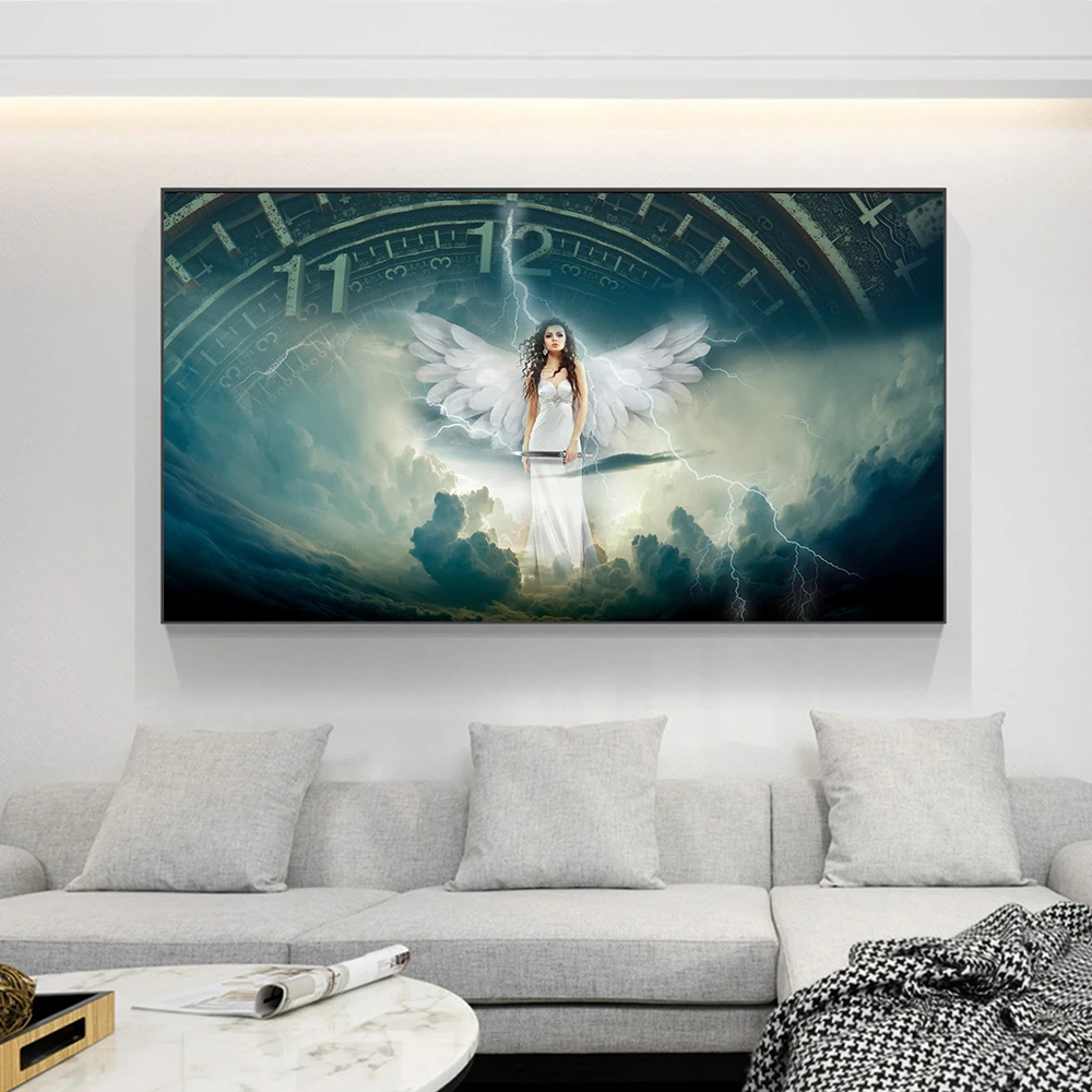 Женский Ангел время холст художественные принты HD картины в стиле фентези на холсте квадратные постеры и фотообои для декора гостиной