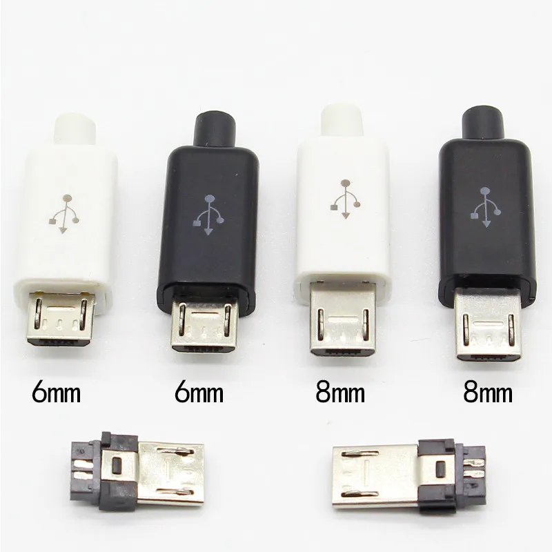 10 шт потребительских упаковок для микро USB 5PIN сварки Тип штекер разъемы Зарядное устройство 5P USB хвост разъем зарядки 4 в 1 цвета: белый, черный