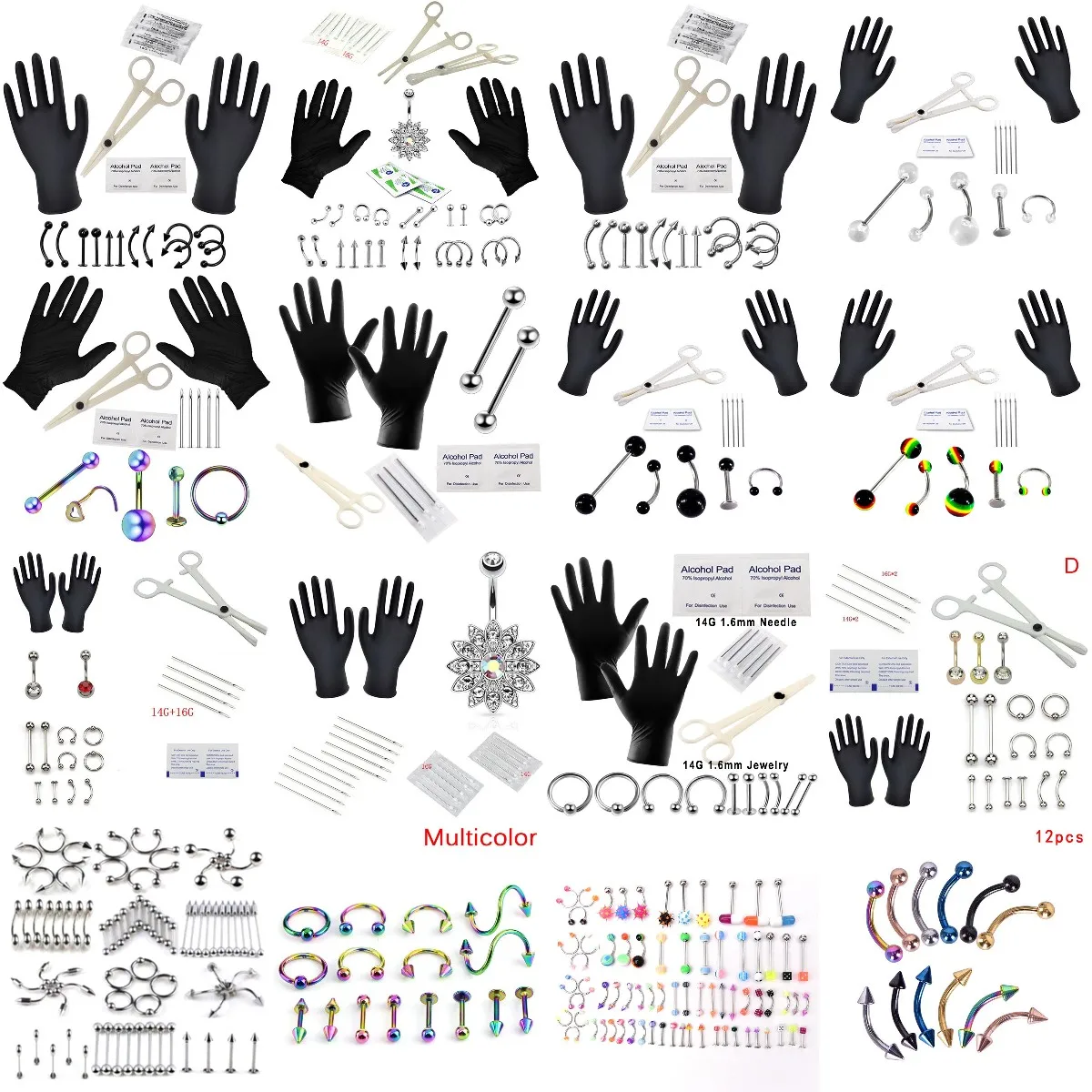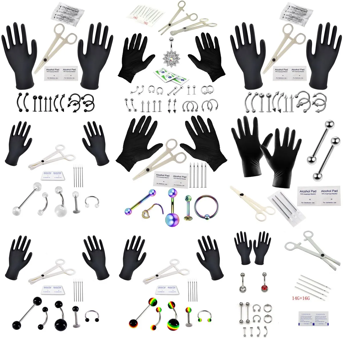 Набор инструментов для пирсинга, хирургическая сталь, в язык, бровь, пупка для носа, ювелирное изделие, зажим, перчатки, иглы, заглушки, гвоздики