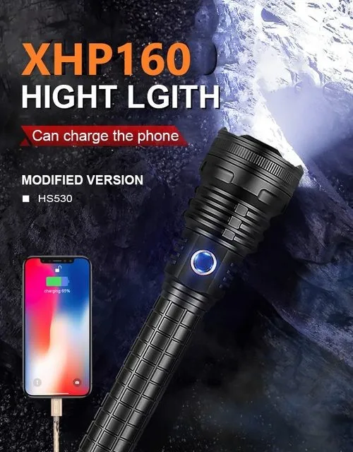 AliExpress самый мощный XHP160led фонарик перезаряжаемый телескопический зум тактический фонарь 18650/26650 аккумулятор