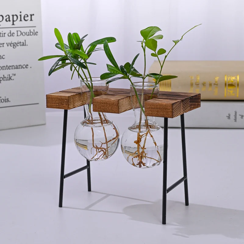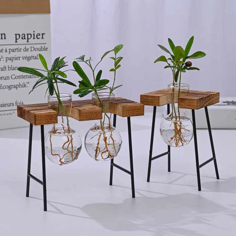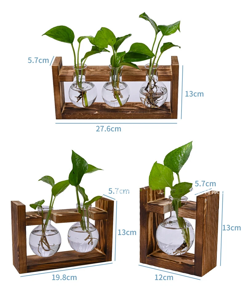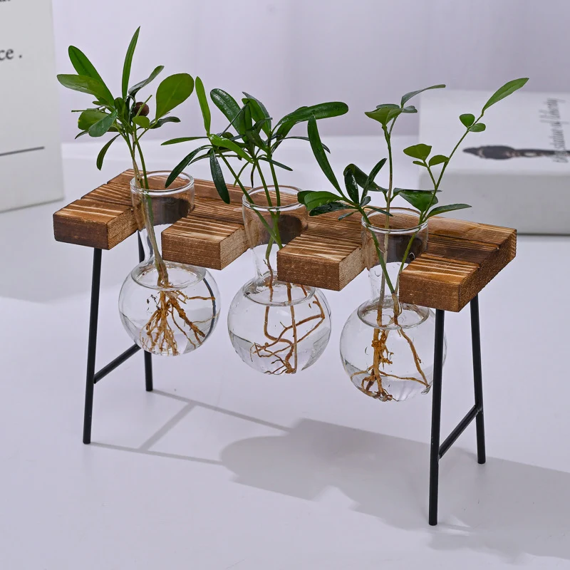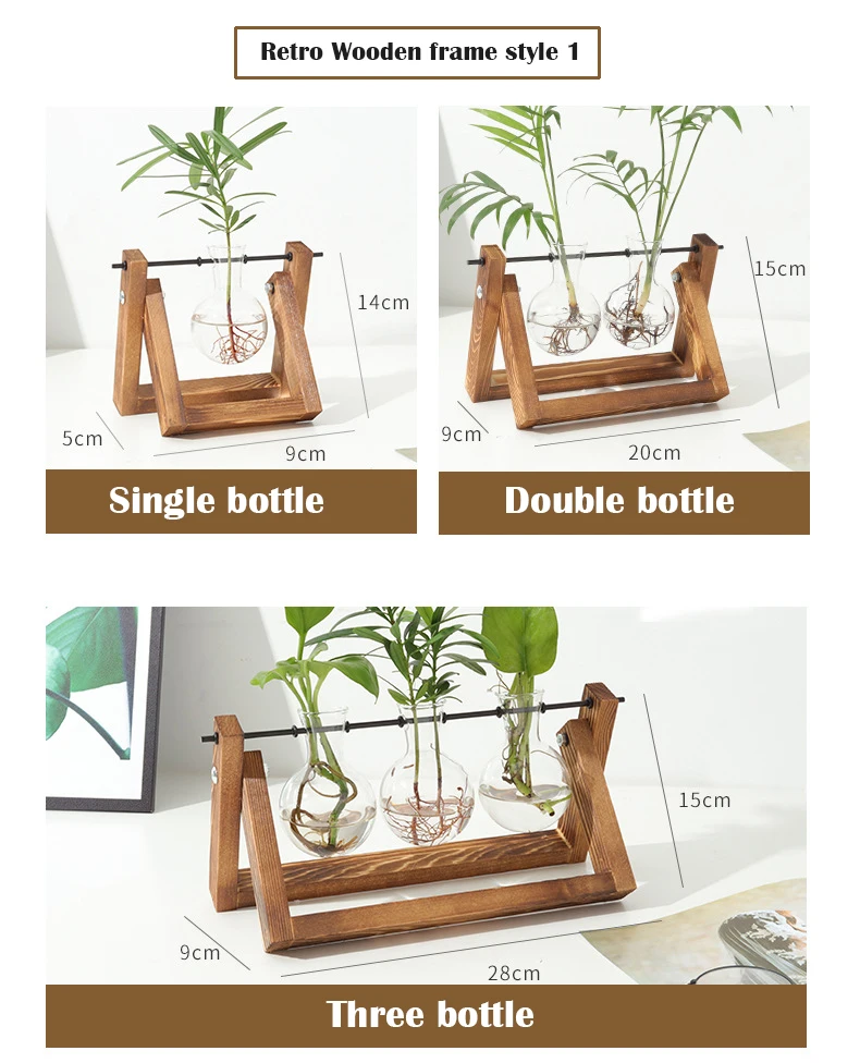 Стеклянный Горшок для украшения дома в деревянной рамке, бонсай, прозрачная ваза, Террариум, гидропоника, винтажный цветочный горшок, вазы для растений, прозрачная ваза