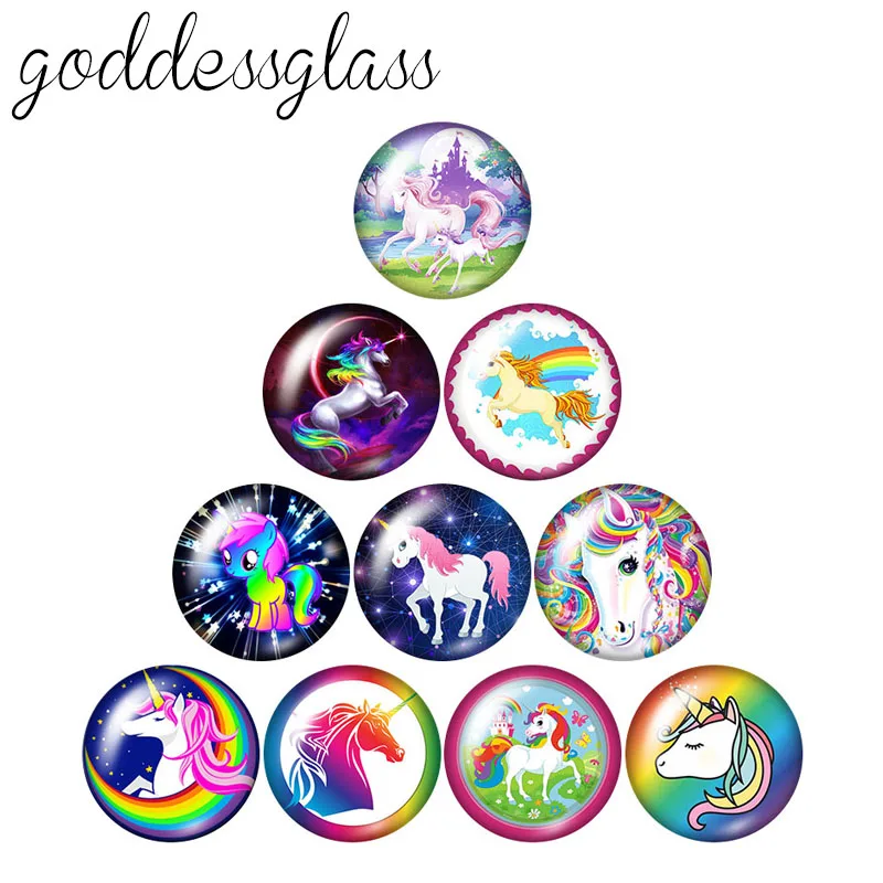 Новые магические Лошадь Единорог красочный 10 шт. 12 мм18 мм20 мм25 мм кабошоны круглые фото кабошоны разрисованные изделия из стекла с плоской задней частью Цепочки и ожерелья, украшения своими руками