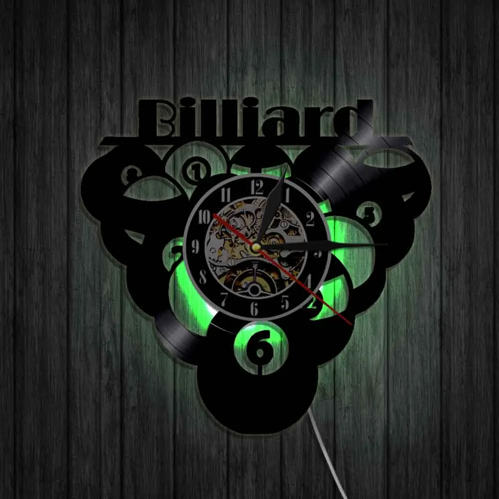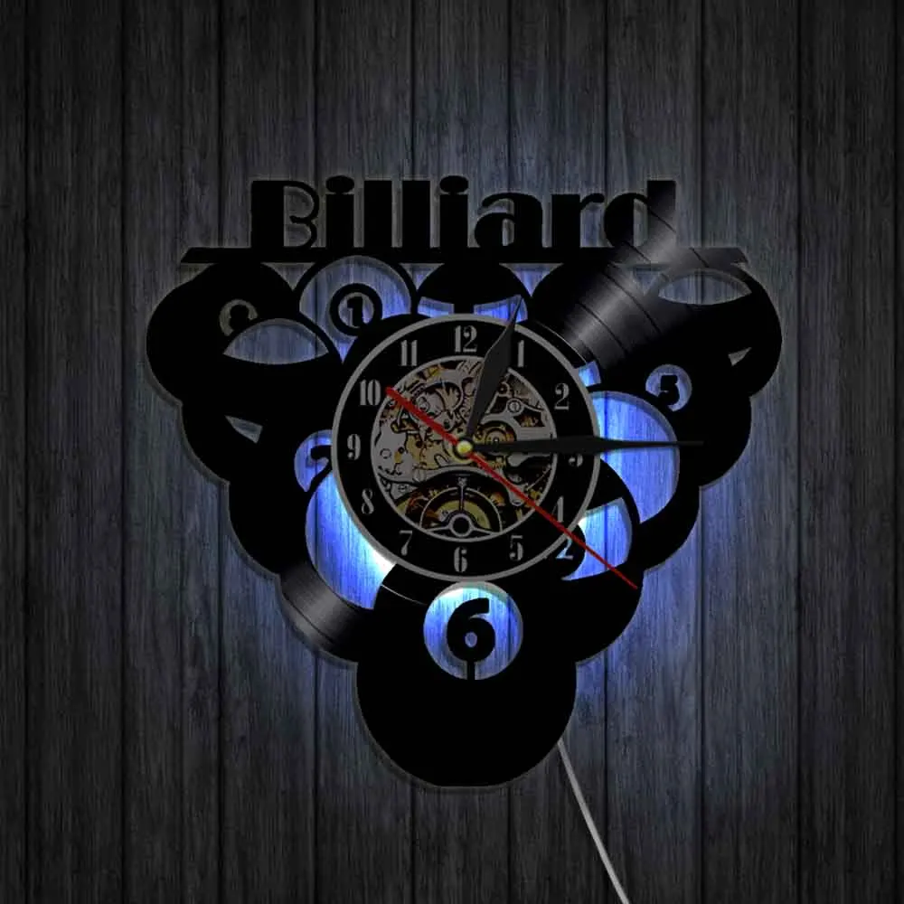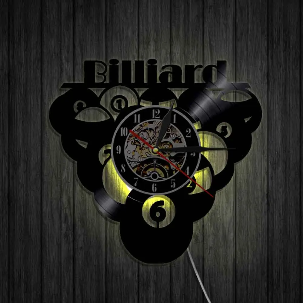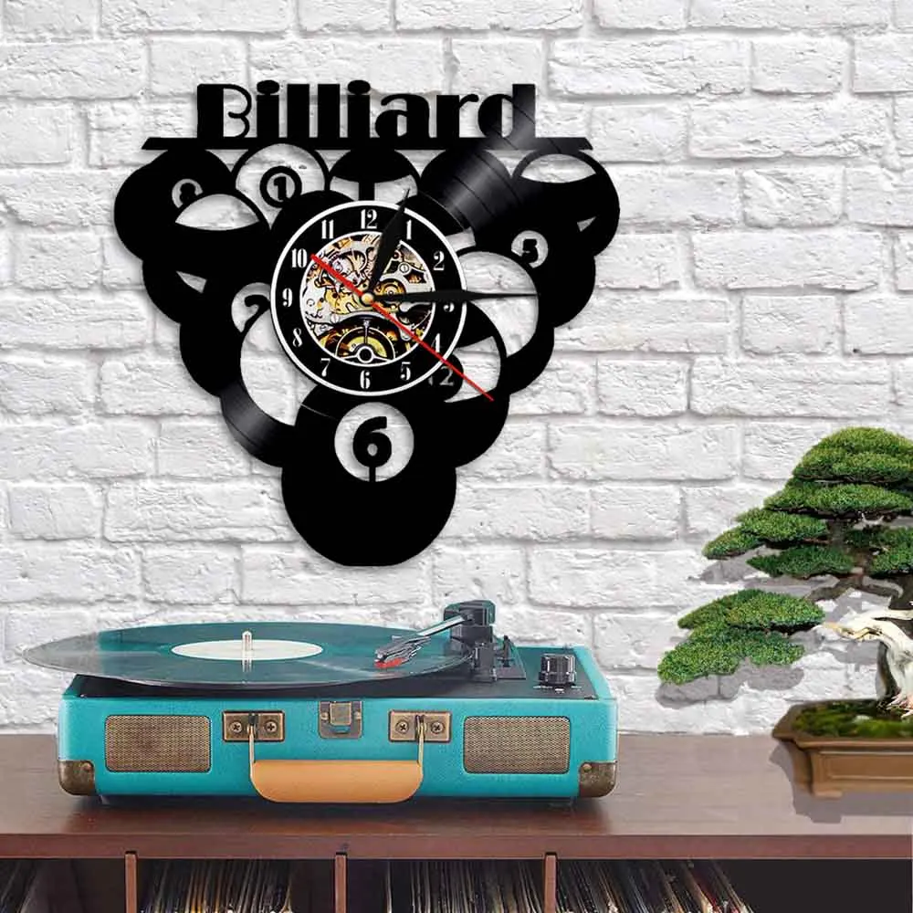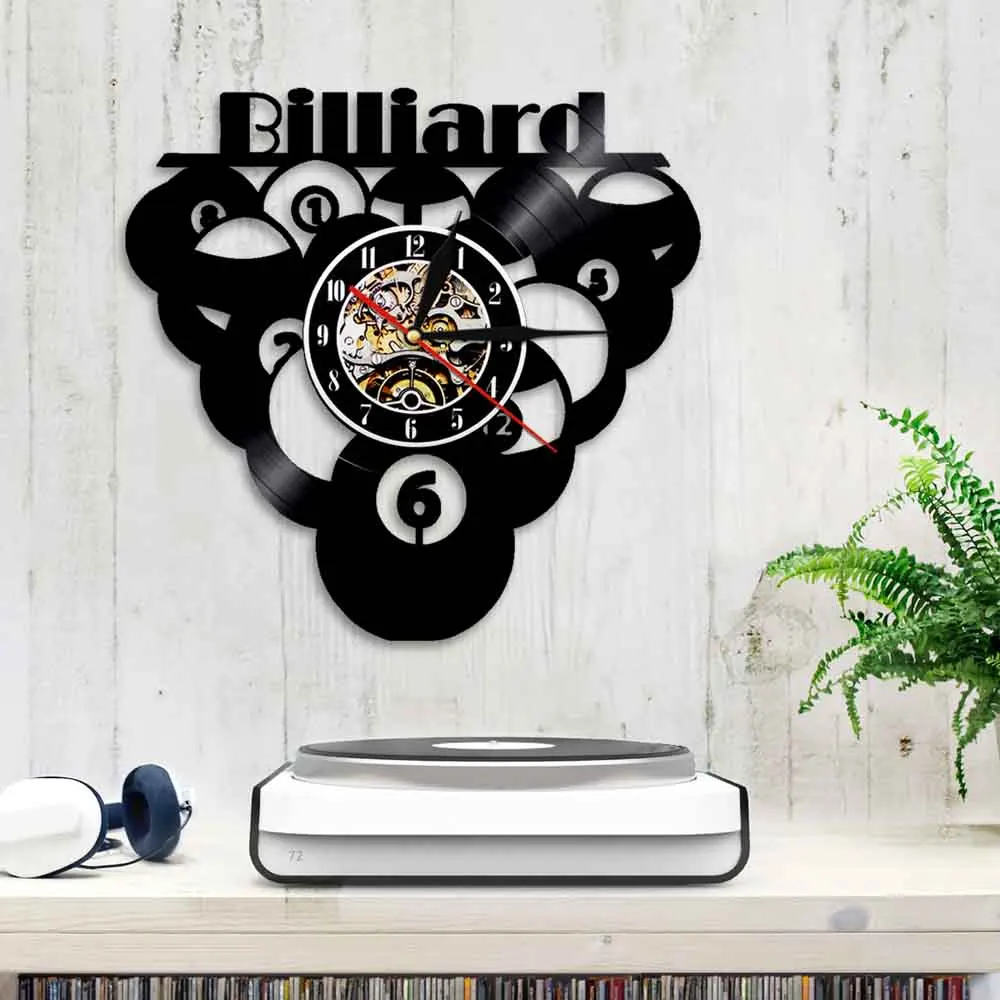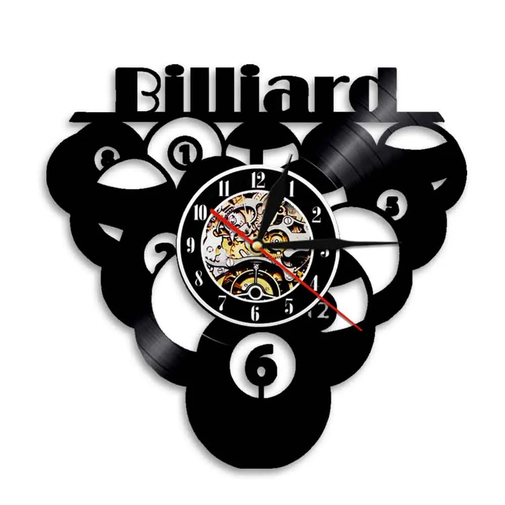 Бильярдный мяч бассейн Виниловая пластинка настенные часы снукер игроки Бассейн Настенные Часы Настольный теннис декор комнаты часы тренер по бильярду подарок
