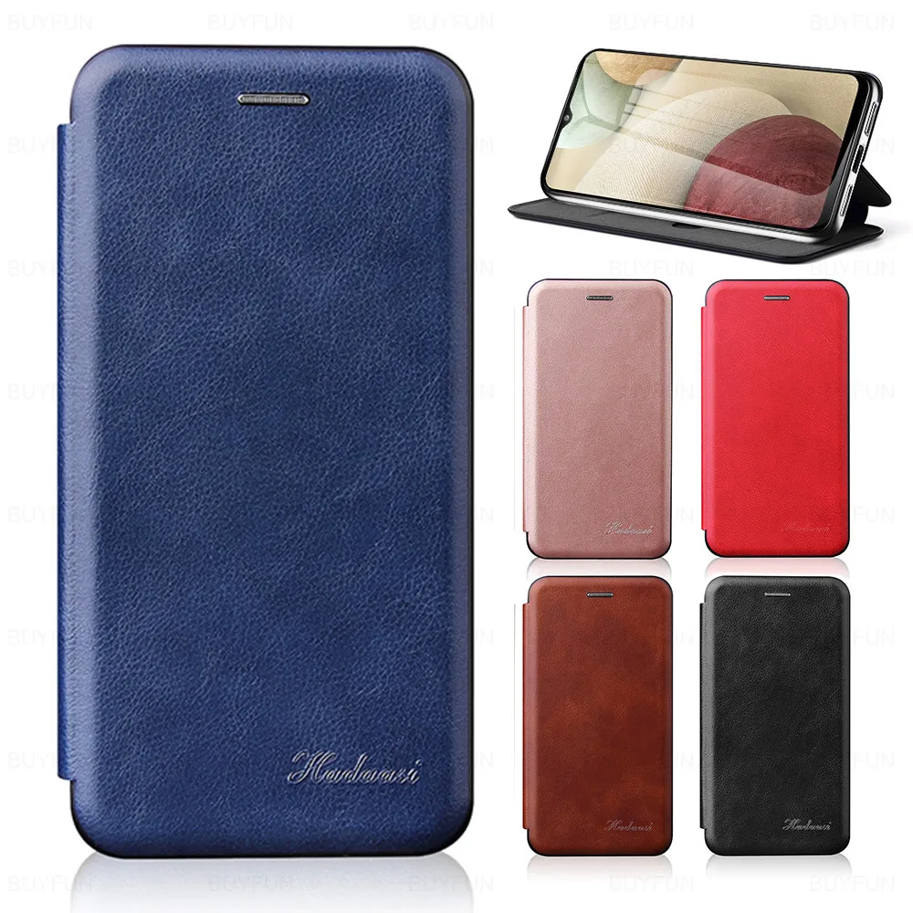 Кожаные чехлы для телефонов Samsung Galaxy A12, чехол с магнитной з...
