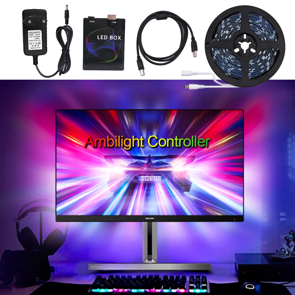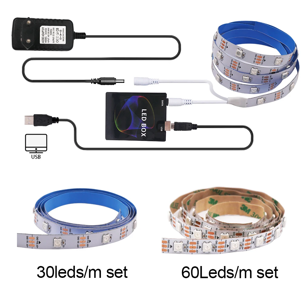 Светодиодная лента WS2812B сделай сам, подсветка для монитора HD телевизора, компьютера, 5 В, доступная LED полоска для окружающего ТВ, экрана мечты USB, 1 м, 2 м, 3 м, 4 м, 5 м