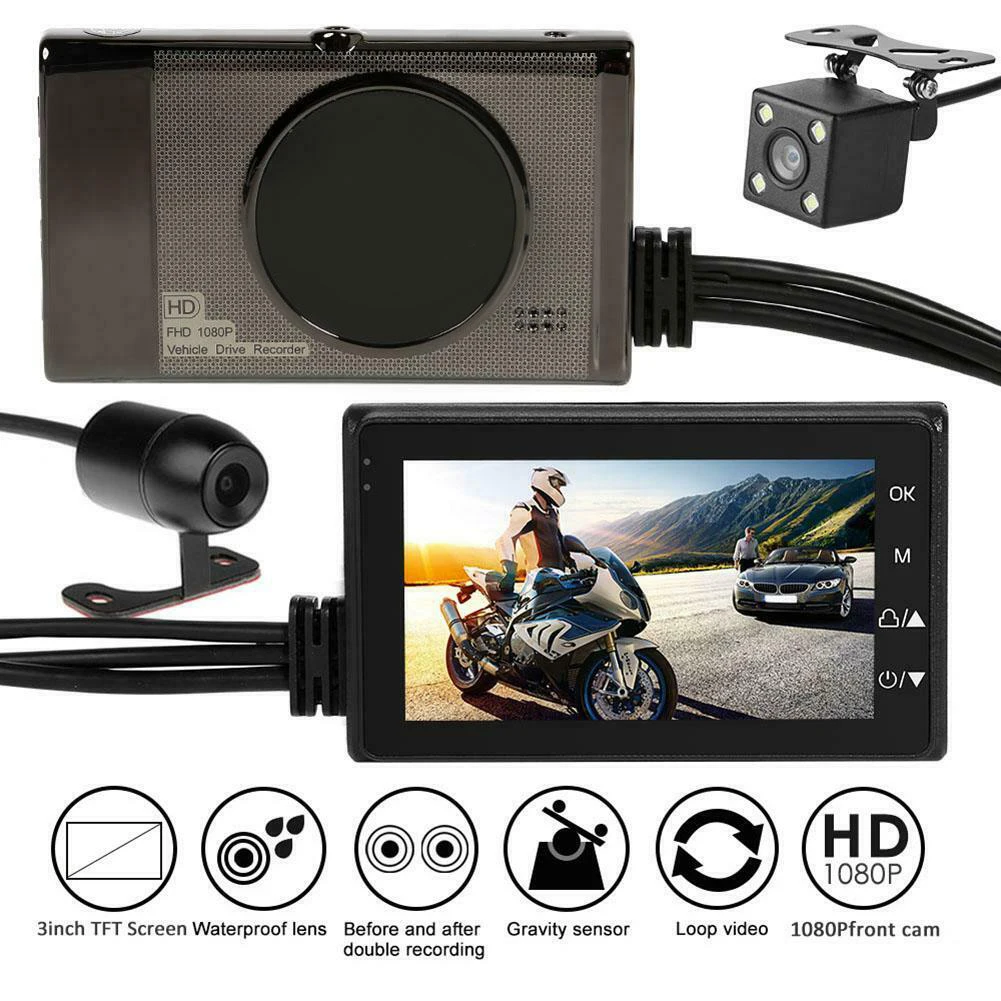 Видеорегистратор для мотоцикла, 2019 дюйма, 1080P, два объектива