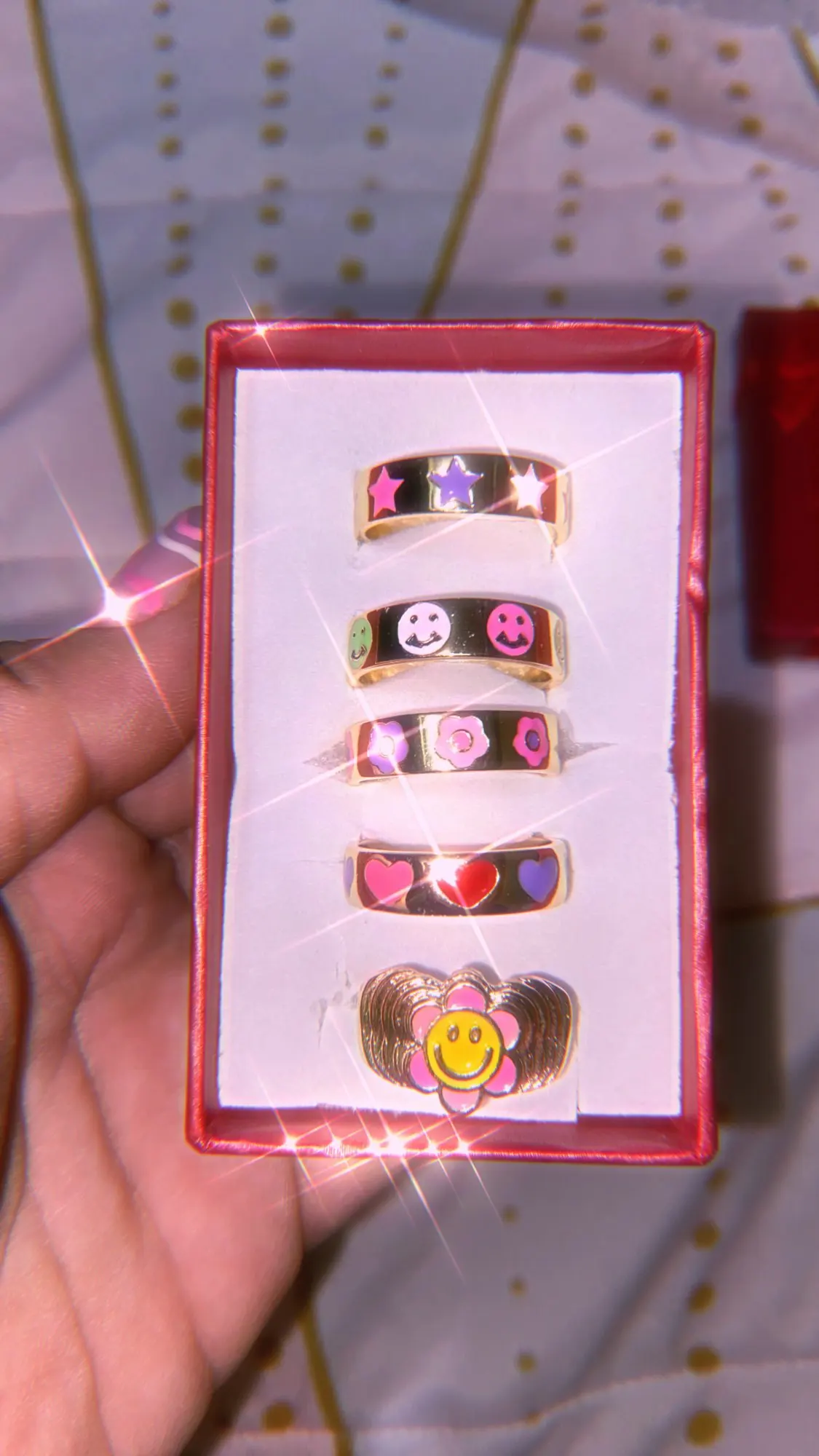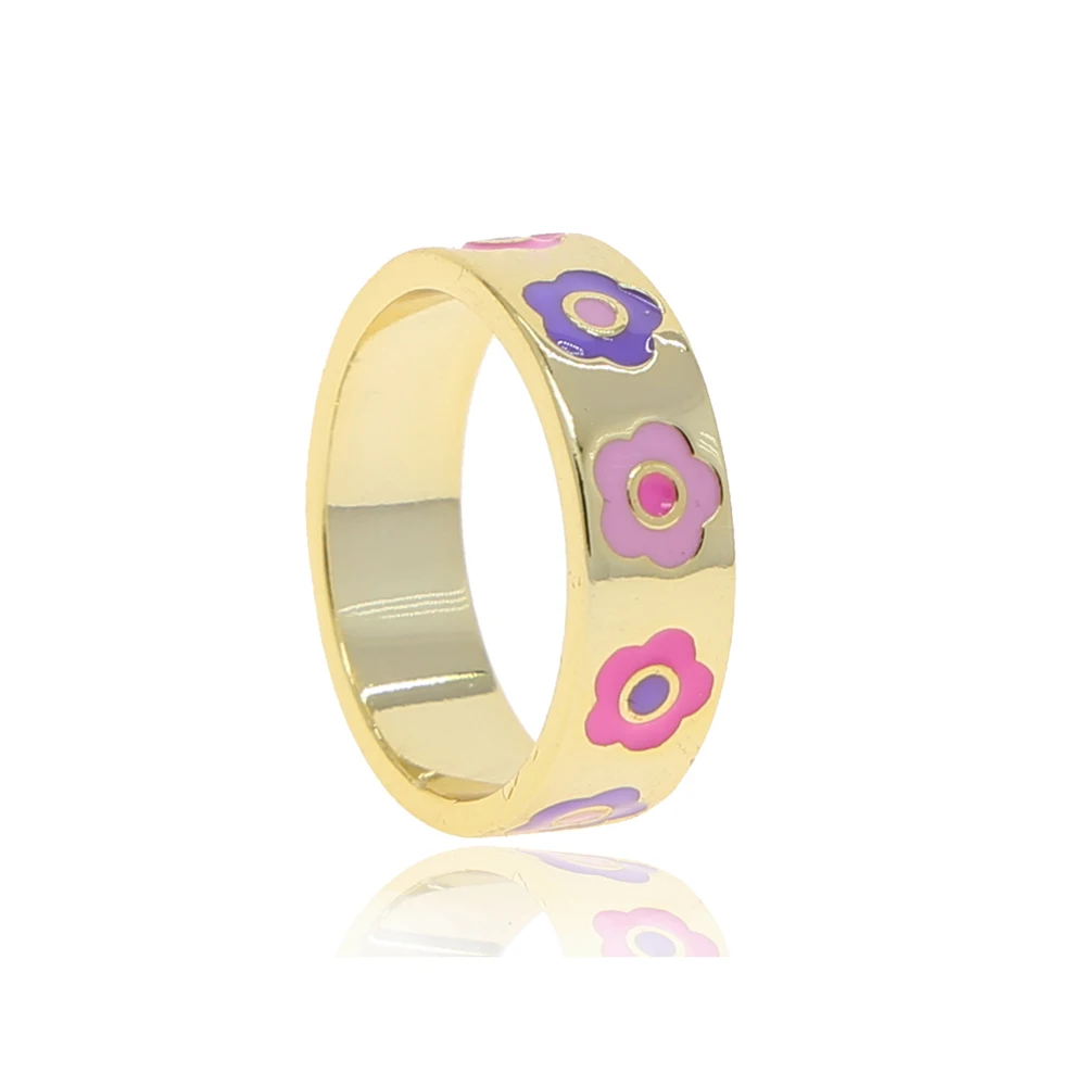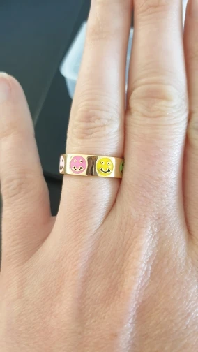 Кольцо женское, эмалированное, золотистого цвета, с изображением сердца и улыбки, 2021