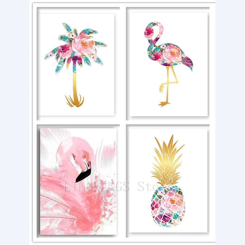 5D алмазная живопись сделай сам, пальма, ананас, фламинго, искусство, Алмазная мозаика, абстрактные цветы, тропическая вышивка крестиком, домашний декор