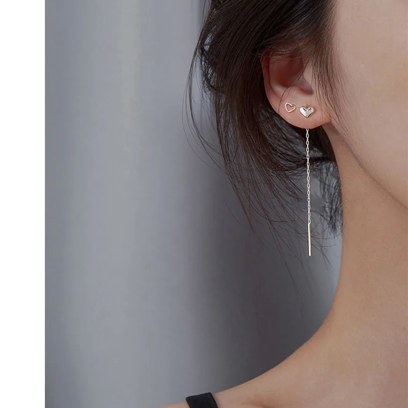 2021 модные серебряные серьги с сердцем для женщин длинные висячие ...