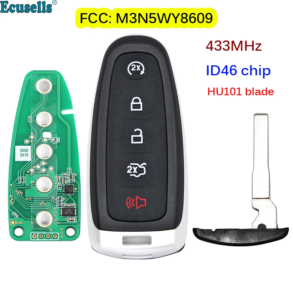 5-кнопочный умный дистанционный ключ Prox 433 МГц ID46 чип для Ford Explorer Edge Expedition Flex C-max Taurus FCC:M3N5WY8609 HU101