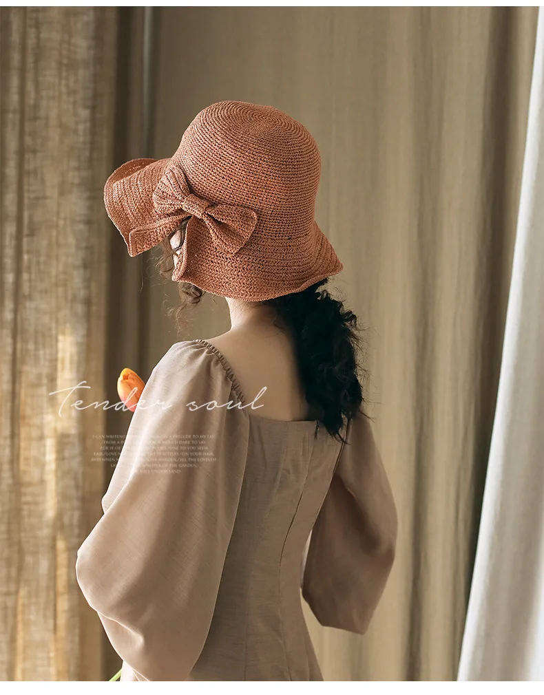 2021 100% Солнцезащитная шляпа из рафии с бантом, летние шляпы с ши...