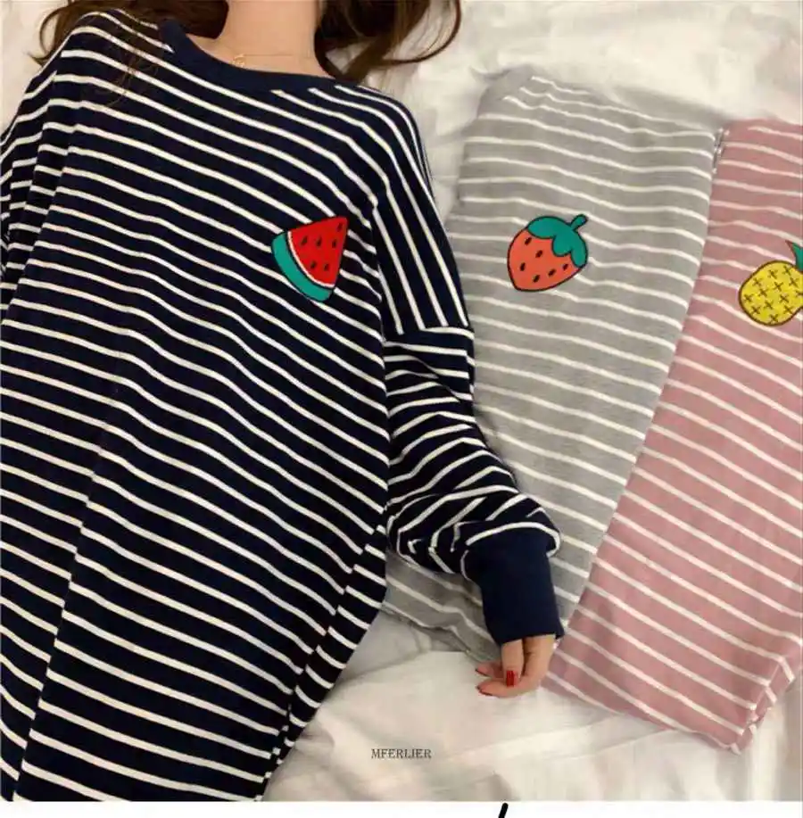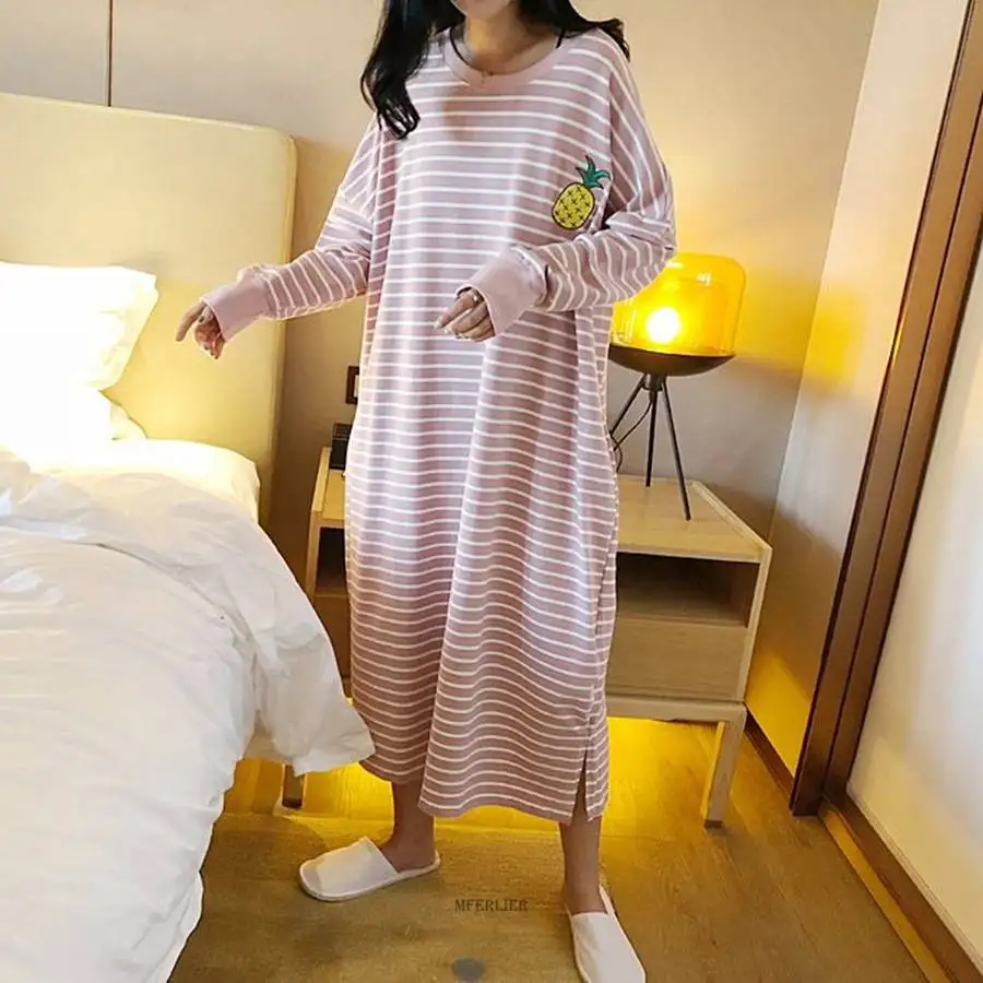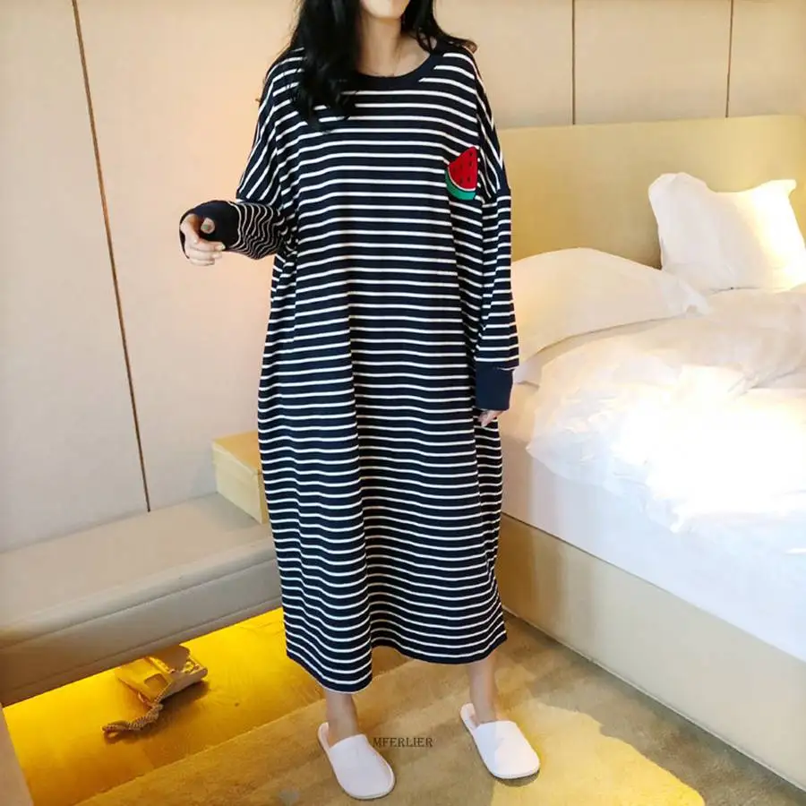 Женское длинное платье для сна, Размер 5XL, вес 120 кг, женская пижама в полоску с длинным рукавом, Осеннее женское свободное Макси-Платье, домашняя одежда
