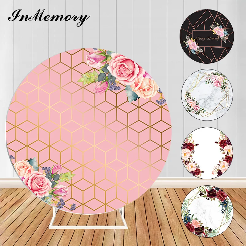 Sensfun круглая роза цветы и золотая линия Свадебная вечеринка фон ...