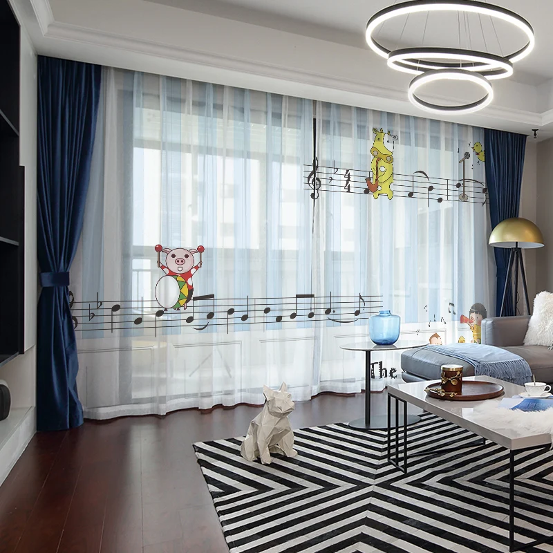 Пианино ключ экран драпировка танцевальная классная музыкальная комната свежая вуаль шторы из тюля 3D печатные музыкальные ноты шторы для детской спальни