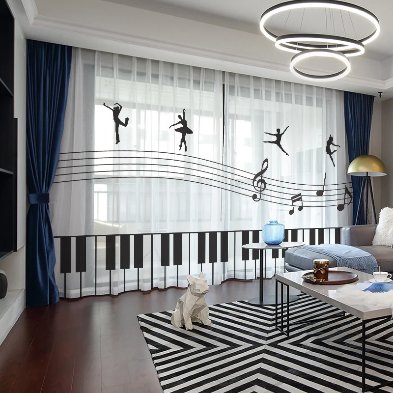 Занавески с изображением клавиш пианино для танцевальной комнаты, музыкальной комнаты, свежая вуаль, 3D печать музыкальных заметок, занавески для детской спальни