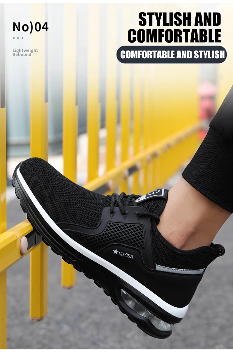 Прочная Мужская защитная обувь светильник Нескользящие рабочие кроссовки, дышащие мужские ботинки со стальным носком и защитой от проколов, с воздушной сеткой