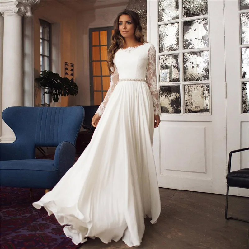 Шифоновое свадебное платье А-силуэта в стиле Бохо