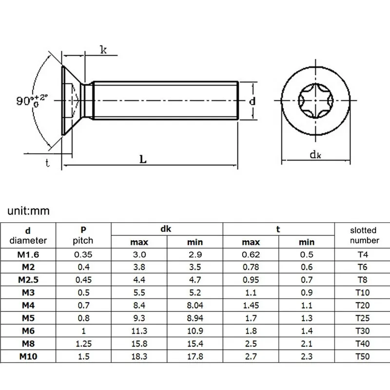 Шестилепестковый винт Torx из нержавеющей стали, шестилепестковый винт с плоской потайной головкой, M1.6, M2, M2.5, M3, M4, M5, M6, M8, M10 304, A2-70, шестилепестковый болт Torx, 550 шт.