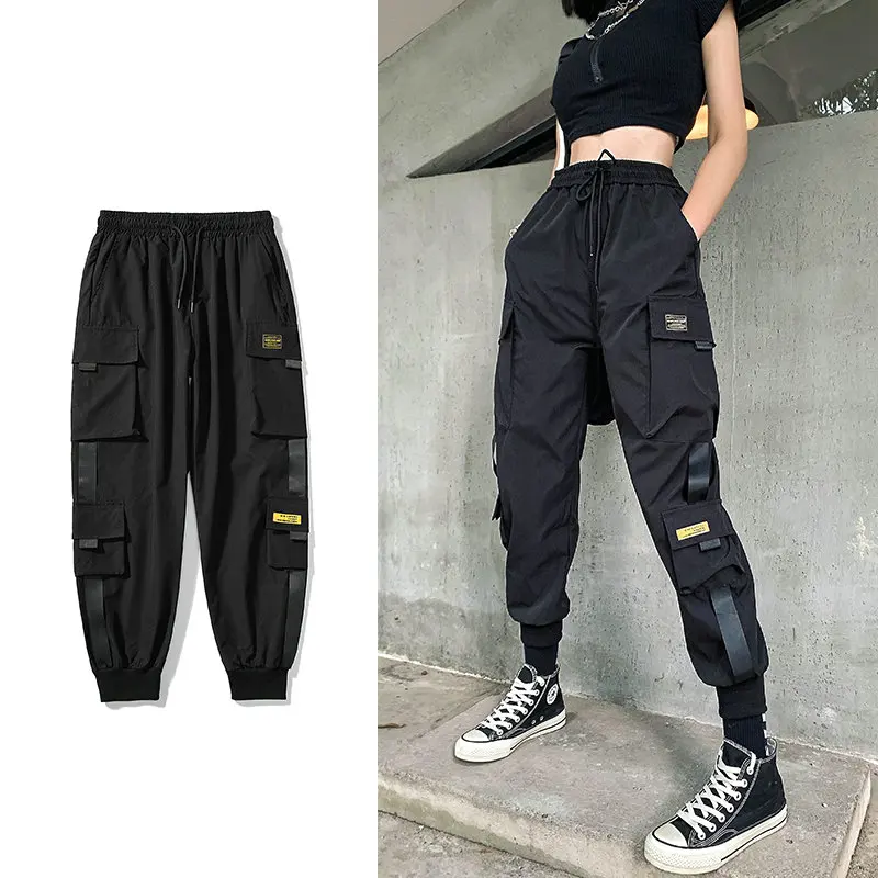Джоггеры-шаровары с лентами, мужские брюки-карго, уличная одежда 20...